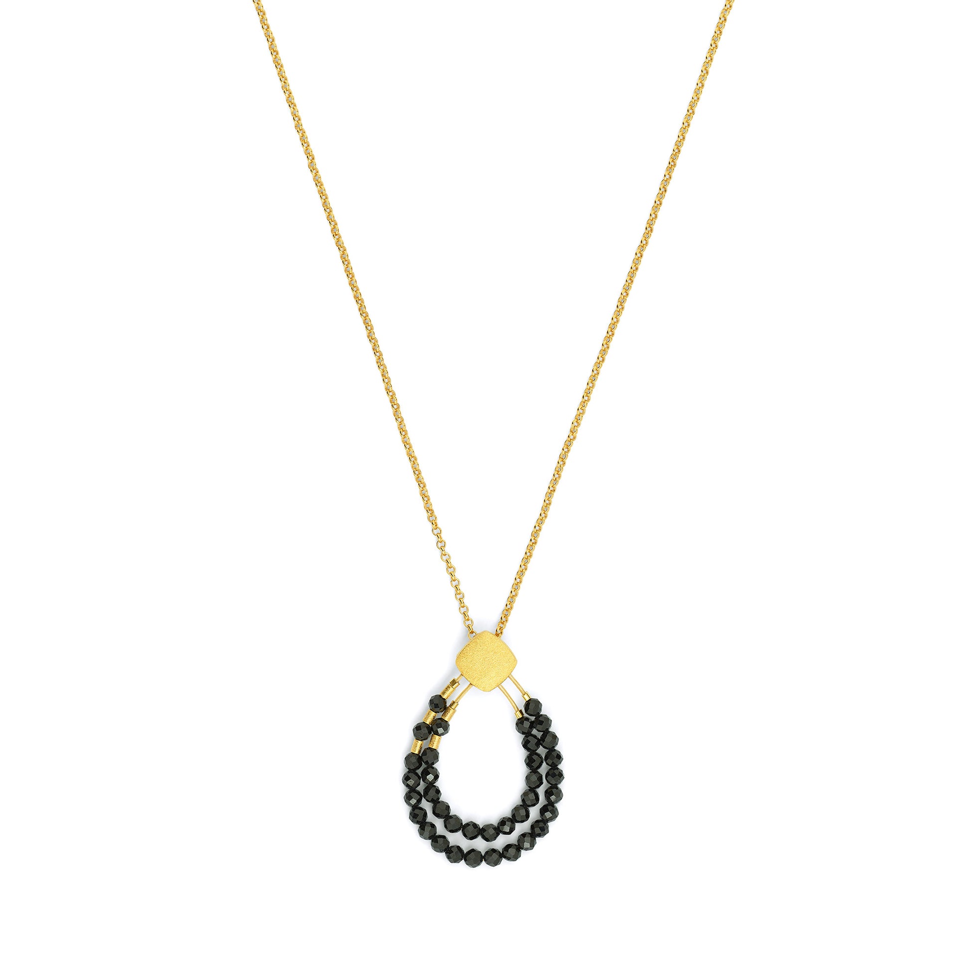 24k Gold-Plated Sterling Silver Double Black Spinel droplet on a 16-18" chain
