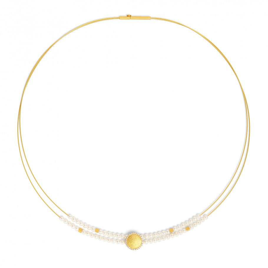 Freshwater Pearls & Cubic Zirconia Halo Disc on a Double Stranded Collar