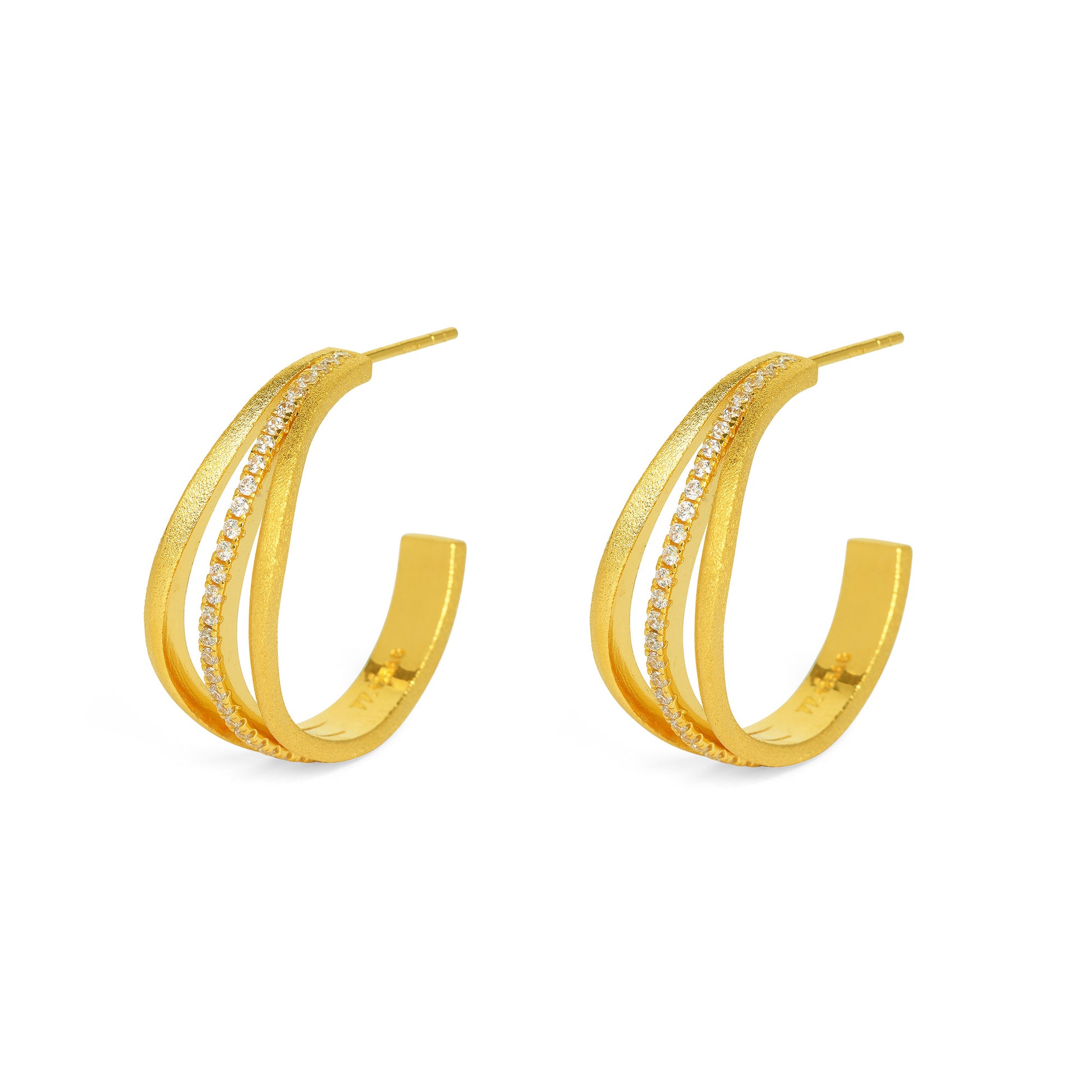 24k Gold-Plated Sterling Silver Hoops with Cubic Zirconia Post Earrings