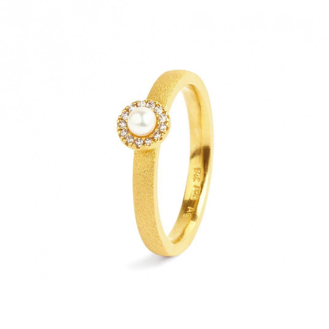 24k Gold-Plated Sterling Silver with a petit center Pearl surrounded by a sparkly cubic zirconia halo.