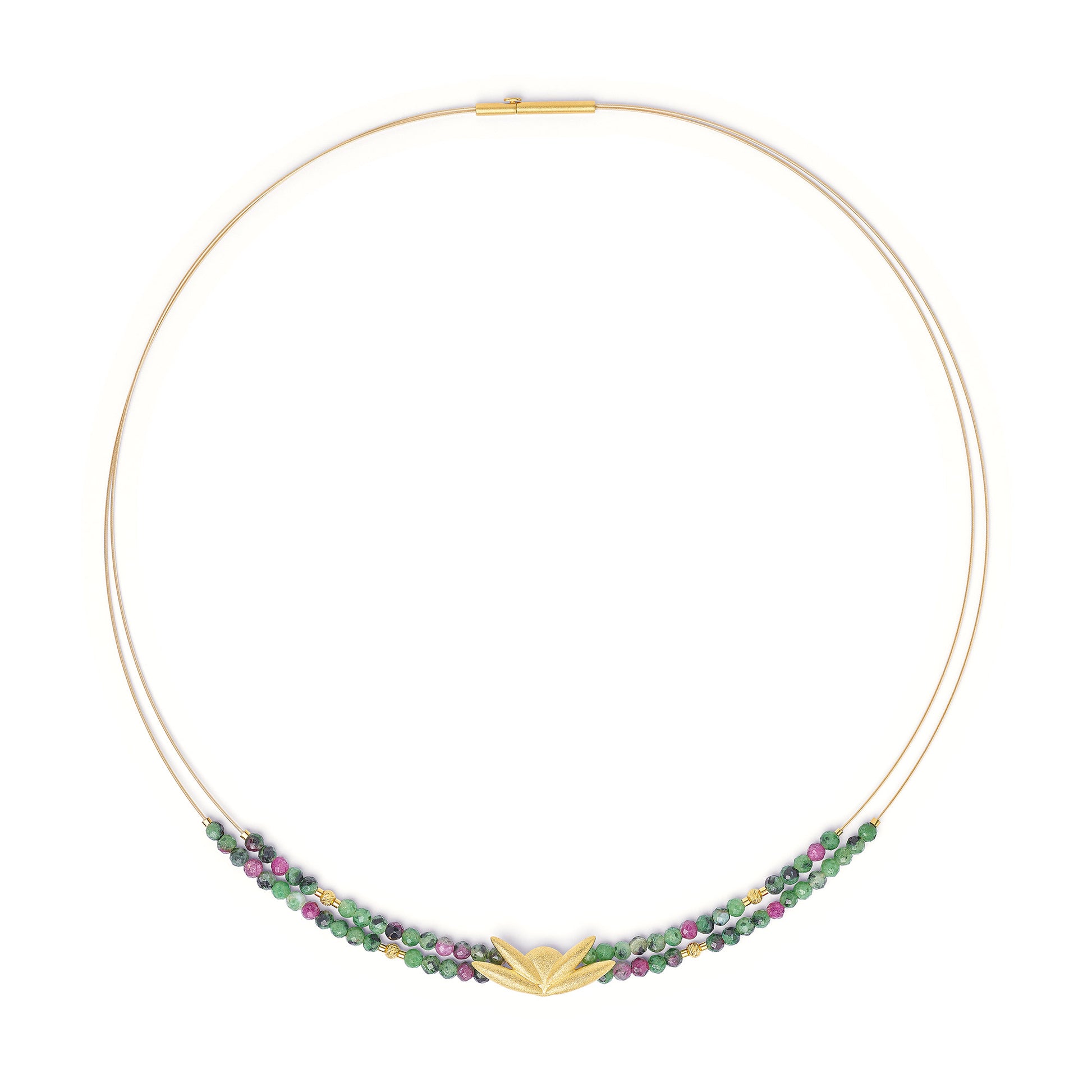 24k Triple-Plated Sterling Silver Ruby Zoisite Triple Strand Collar