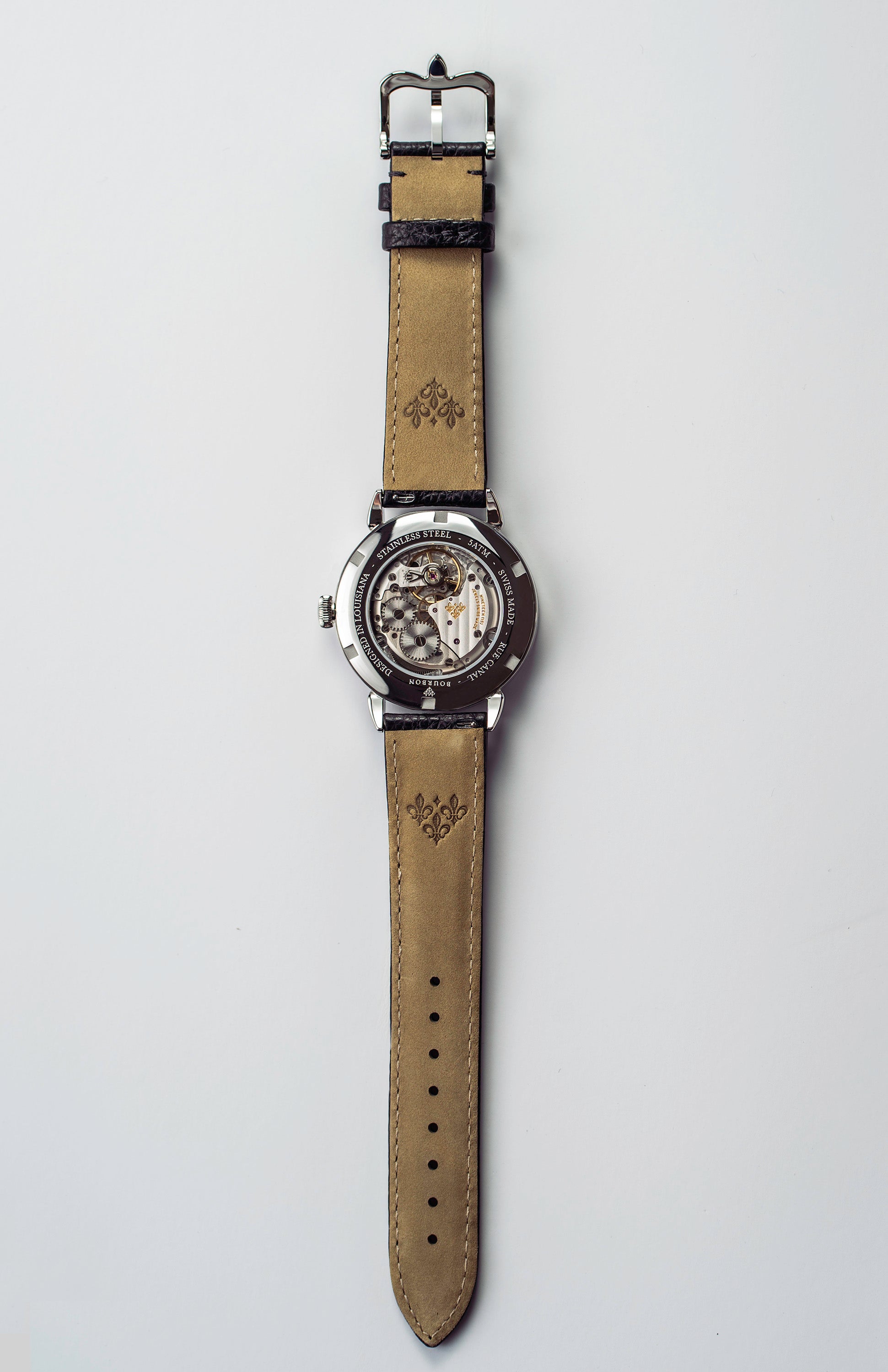 The heart of Rue Canal is powered by an elaboré grade Sellita SW-210 refined with Côtes de Genève and perlage finishings and can be glimpsed through the watch’s sapphire display caseback.
