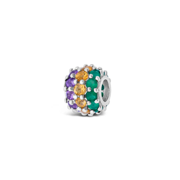 Cristy Cali Collection - Sterling Silver Mardi Gras Bracelet Charm crafted with Green Agate, Yellow Topaz and Amethyst stones