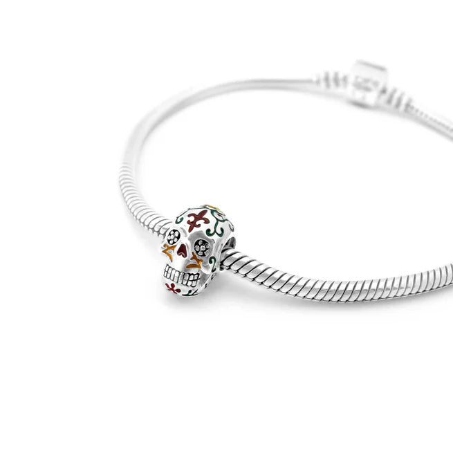 Cristy Cali Collection - Sterling Silver Enameled Mardi Gras Sugar Skull Bracelet Charm