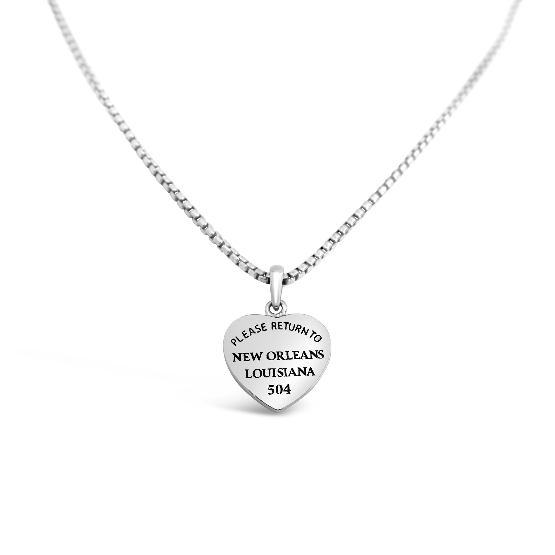 Cristy Cali Collection - Sterling Silver 'Please Return to New Orleans' Heart Pendant on an 18" 1.3mm Rounded Box Chain.