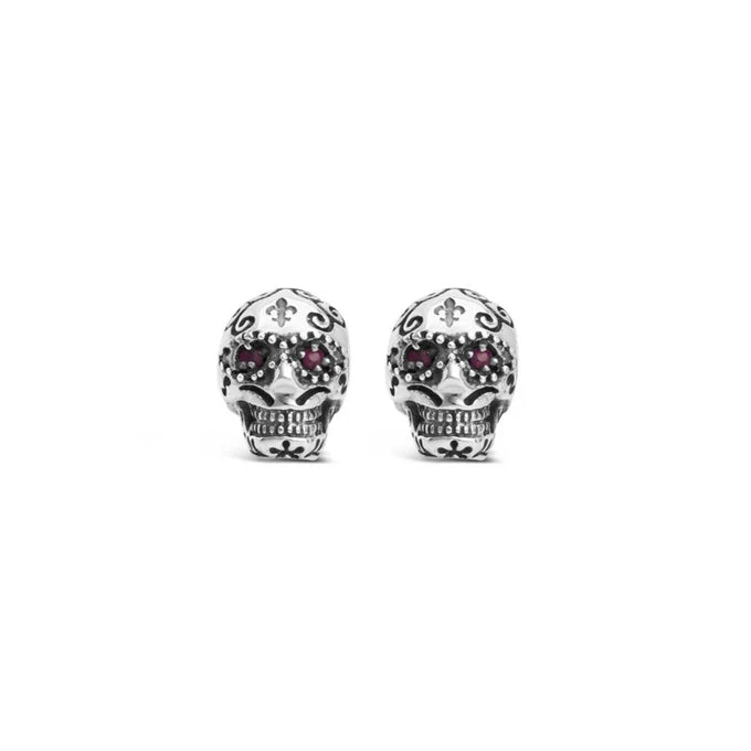 Cristy Cali Collection - Sterling Silver Sugar Skull post earrings with Amethyst accents