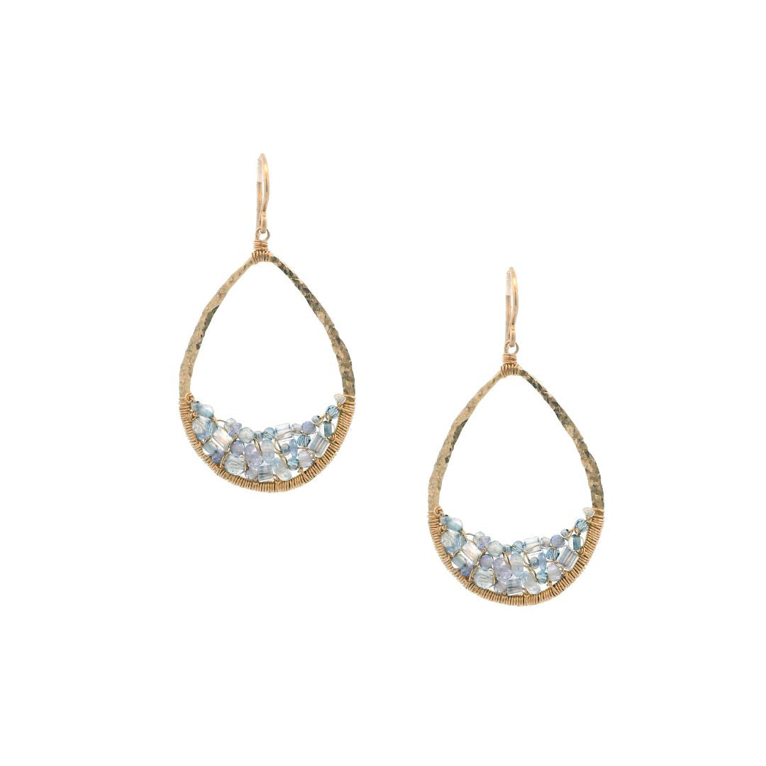 14K gold-filled wire wrapped hoop earrings with tanzanite and blue crystals pearls