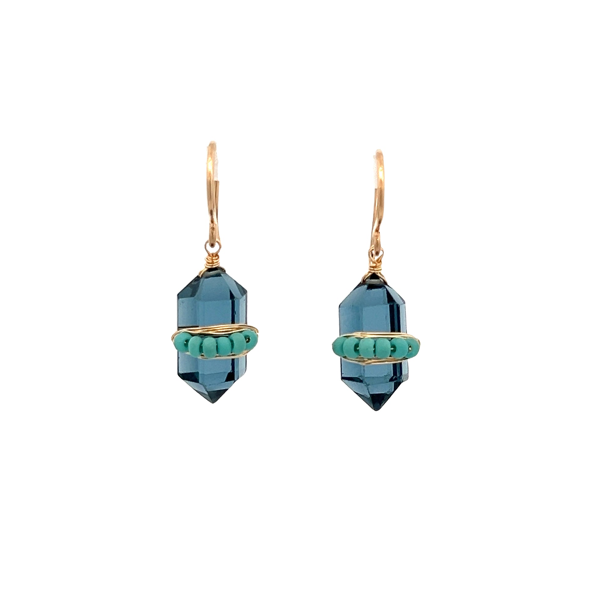 Handmade Earrings with London blue topaz and turquoise wrapped with 14k gold-filled wire