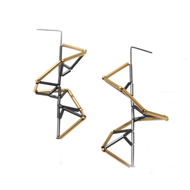 14K Gold-filled and oxidized sterling silver tubes, hand cut and assembled into beautiful geometric designs