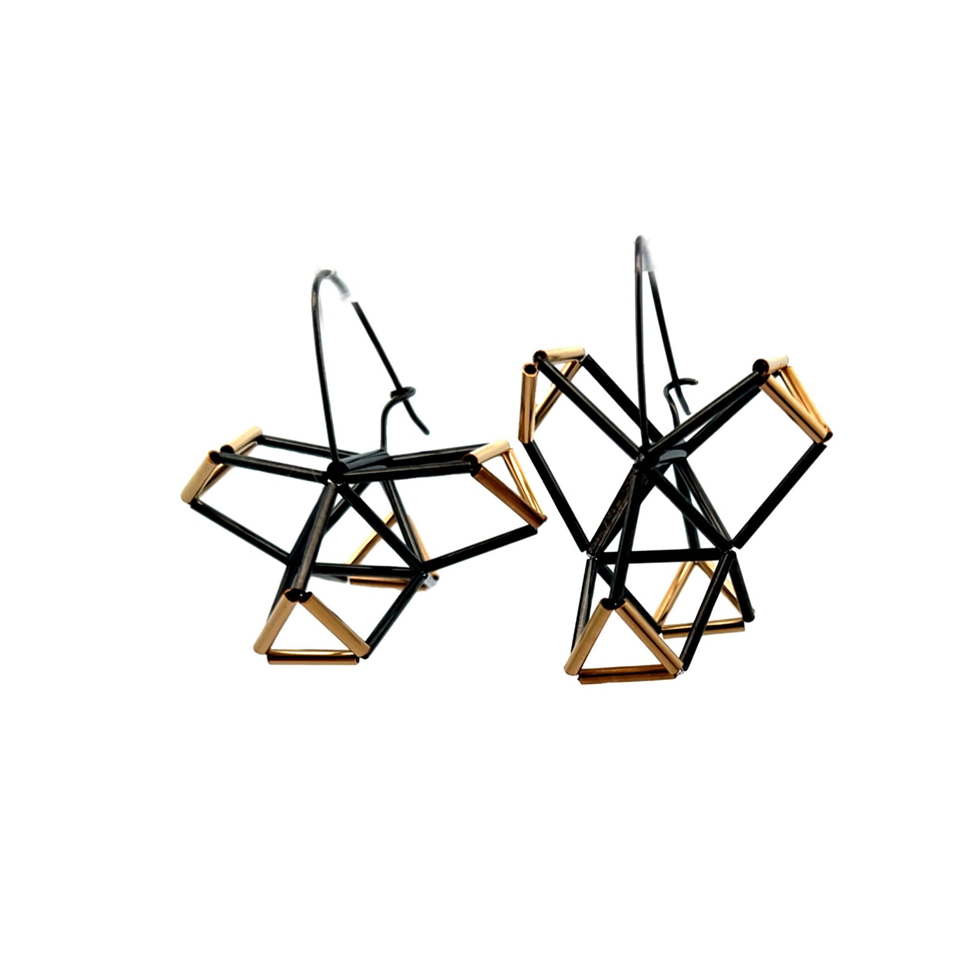 14K Gold-filled and oxidized sterling silver tubes, hand cut and assembled into beautiful geometric designs