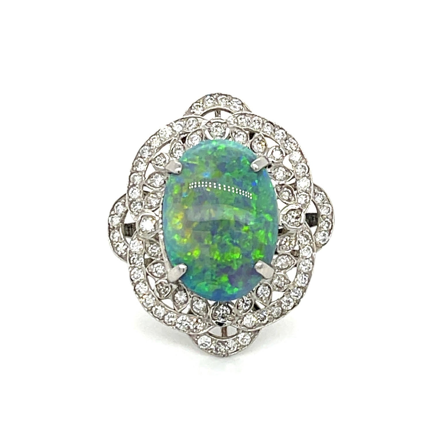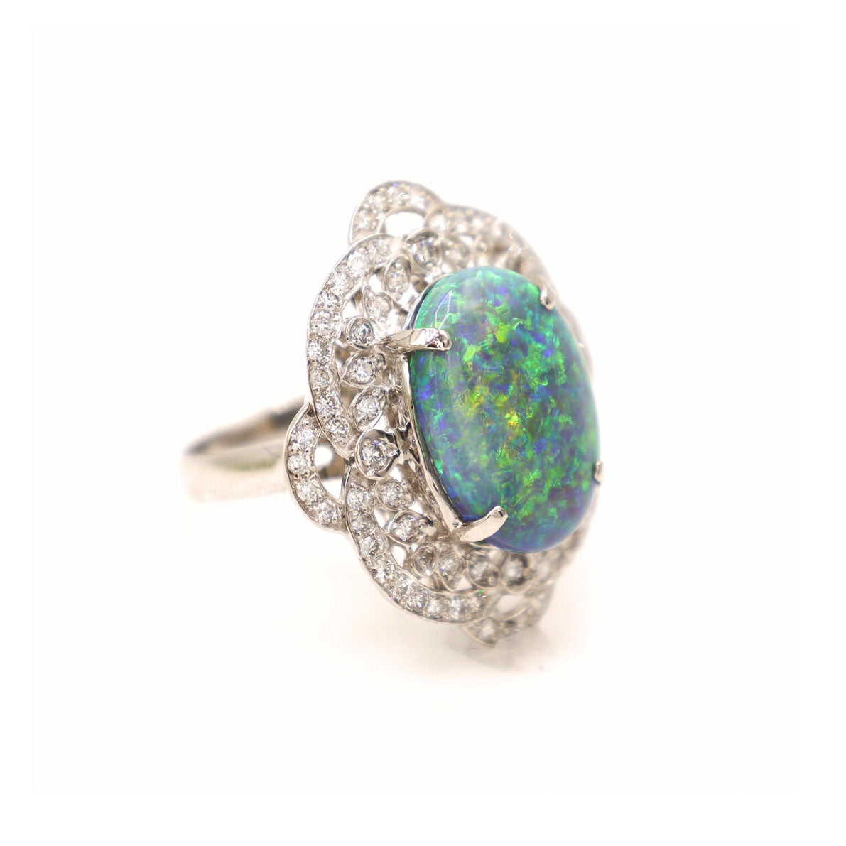 Estate Collection Platinum 6ct Opal & Diamond Ring