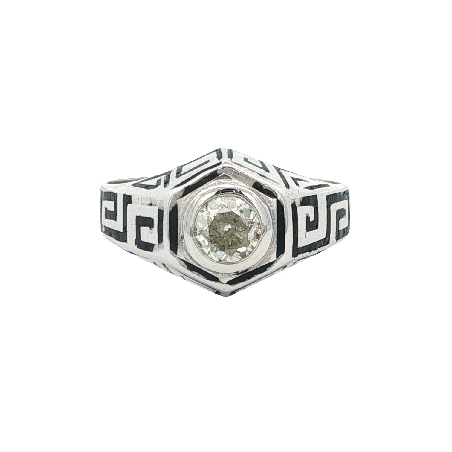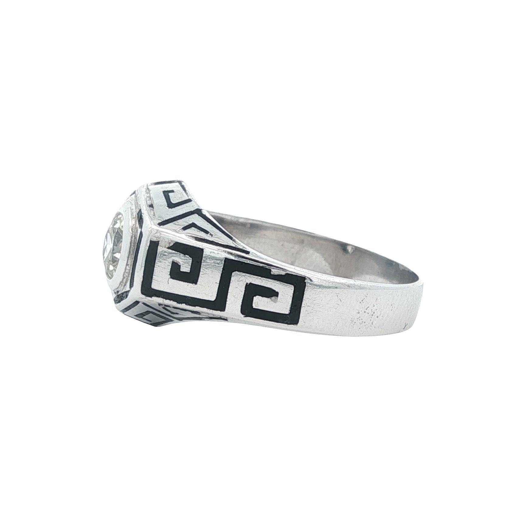 14K White Gold 1930's Art Deco 0.55ct Old European Diamond Men's Ring
