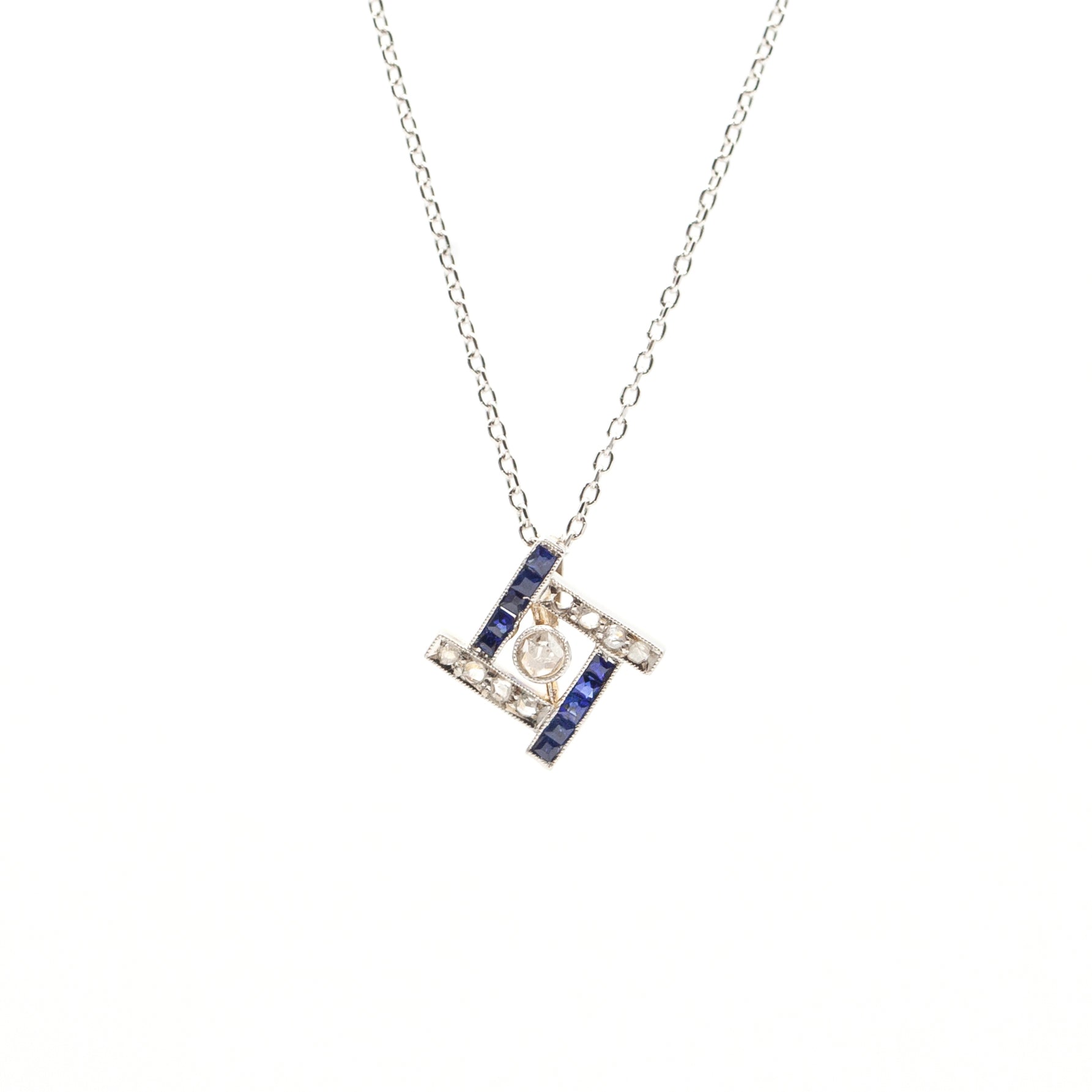 Estate Collection Art Deco Diamond & Sapphire Pendant