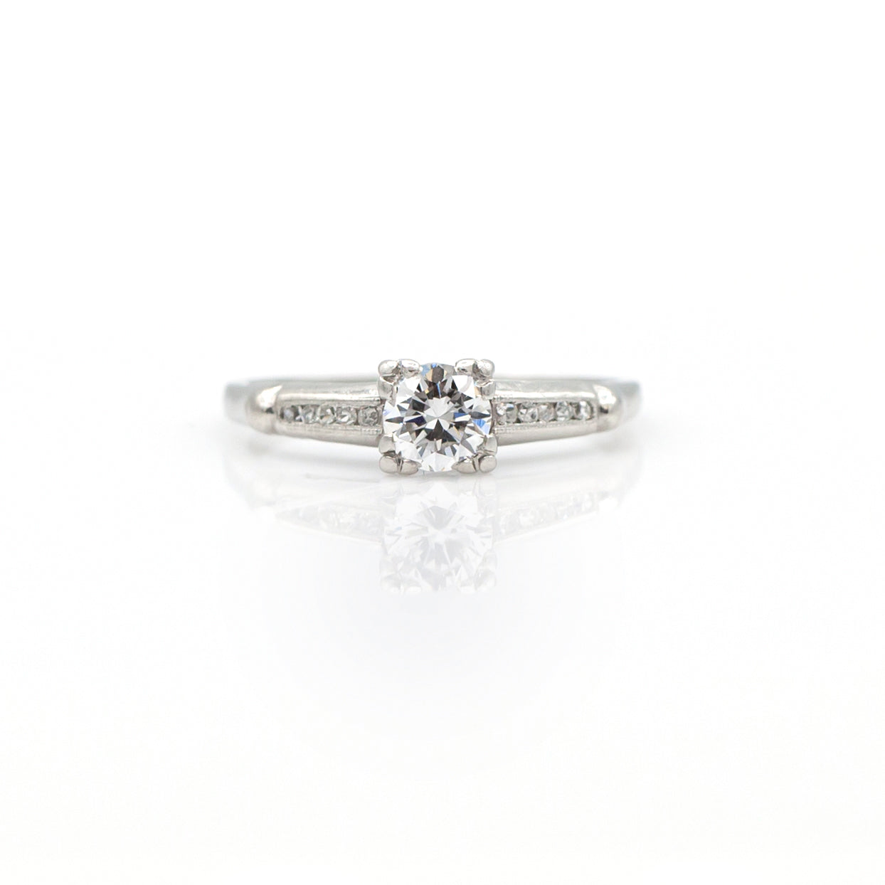 Center Stone: 0.46 ct Old European Cut Diamond, F color, VS1 clarity