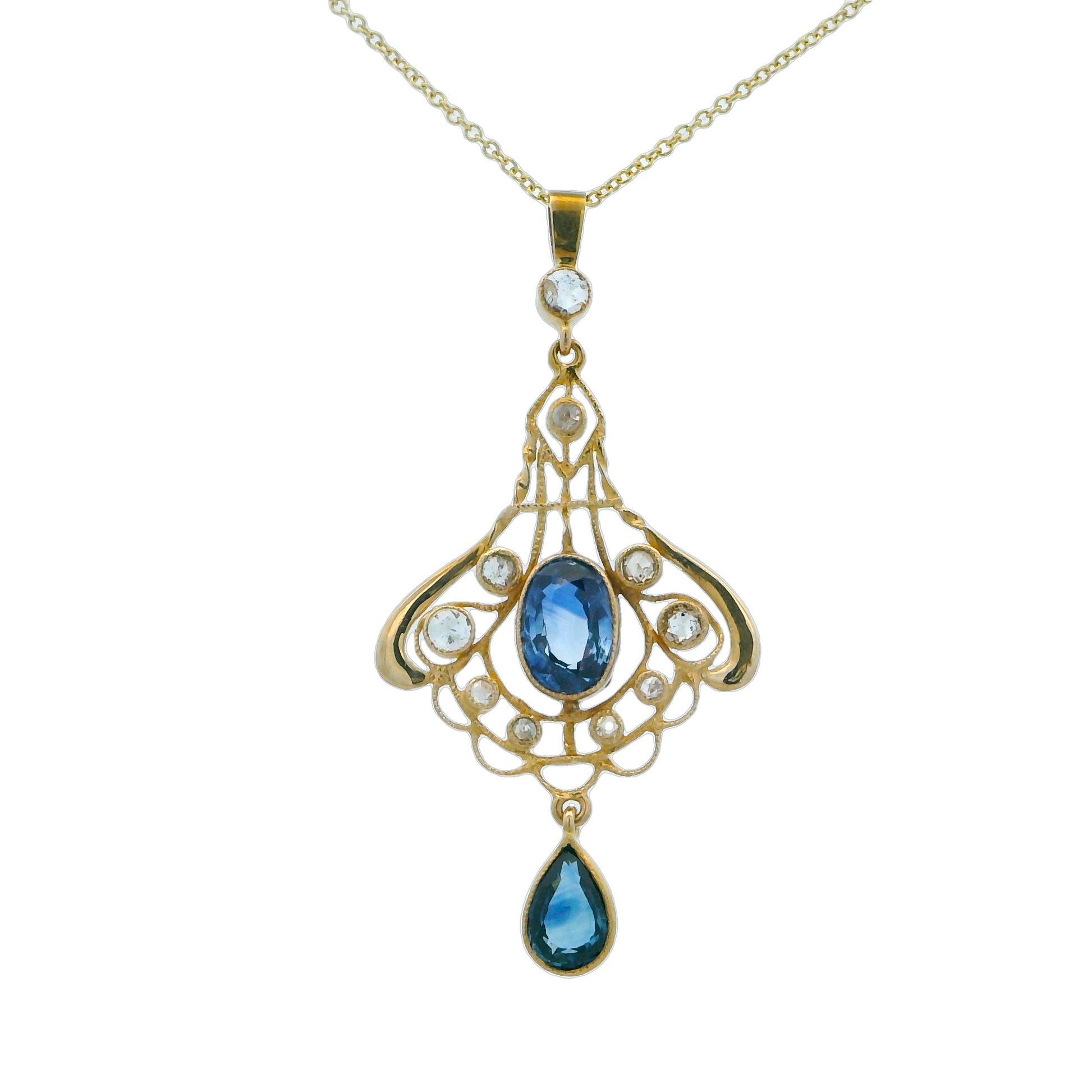 Estate Collection 18K Yellow Gold Art Nouveau Pendant with 1.50CTW Sapphires and 0.30ctw Diamonds
