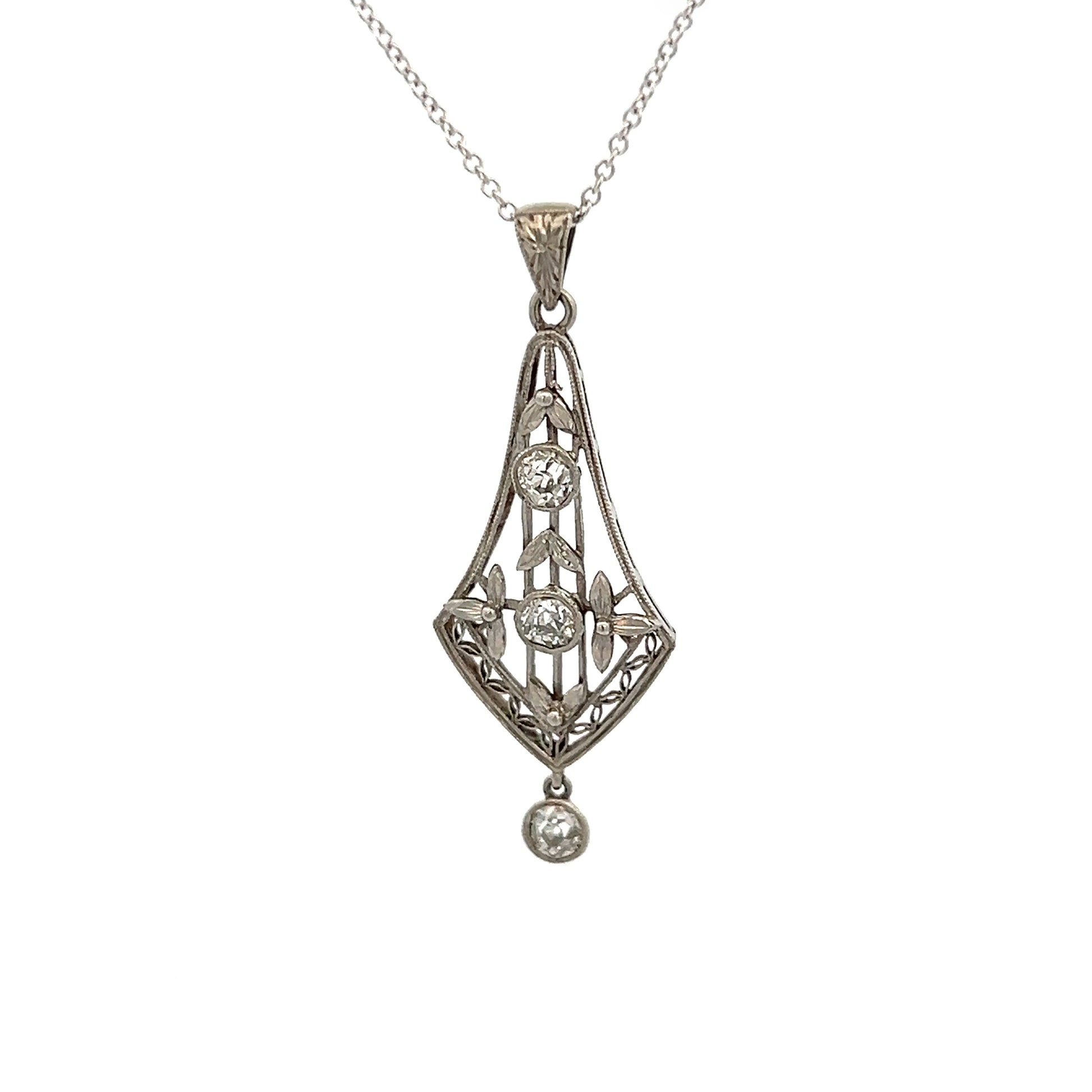 18K Edwardian Diamond Pendant on a 14K adjustable chain up to 18"