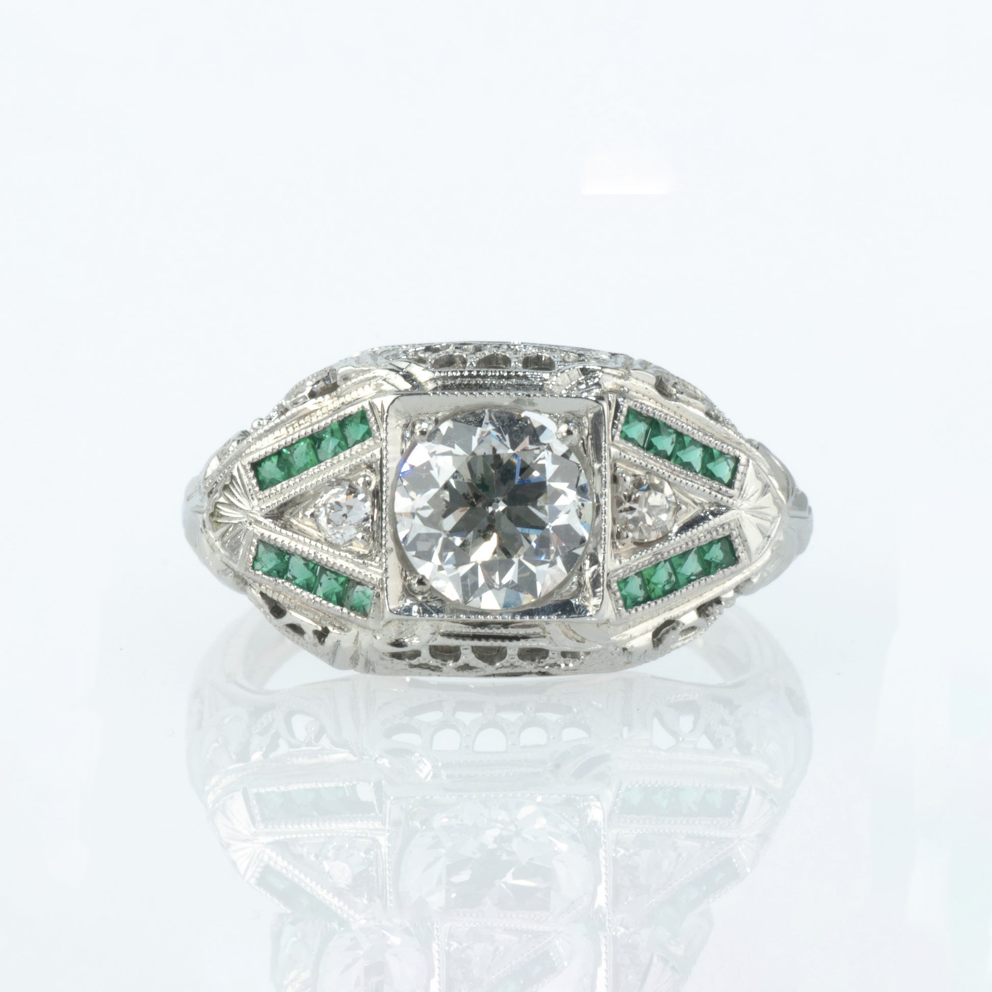 18k White Gold 0.90ct Diamond J/SI2 with Diamond & Emerald Accents