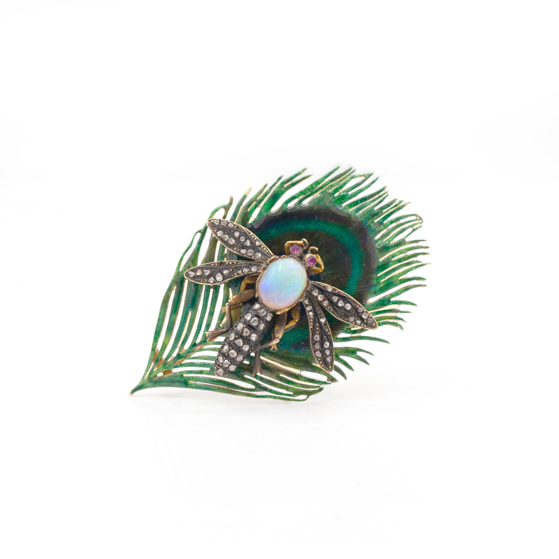Late Victorian18K Opal & Diamond Dragonfly with Ruby Eyes
