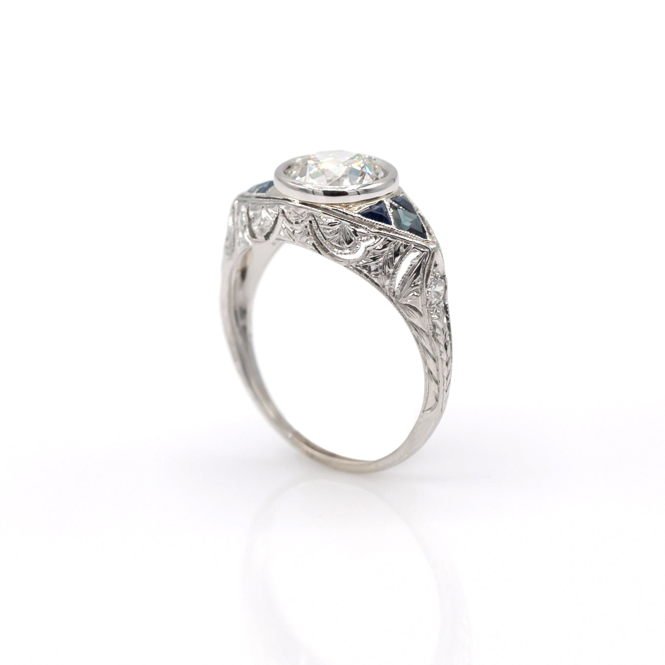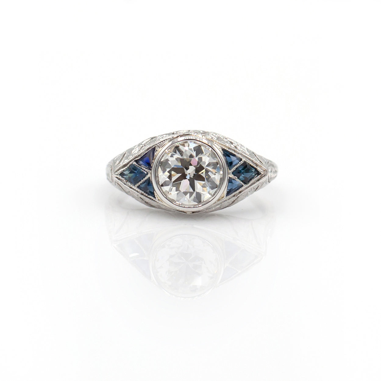 Estate Collection Platinum Art Deco Diamond & Sapphire Ring