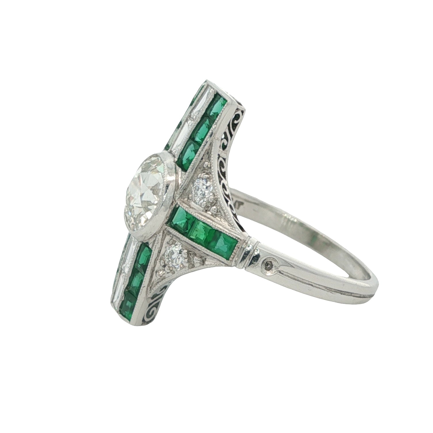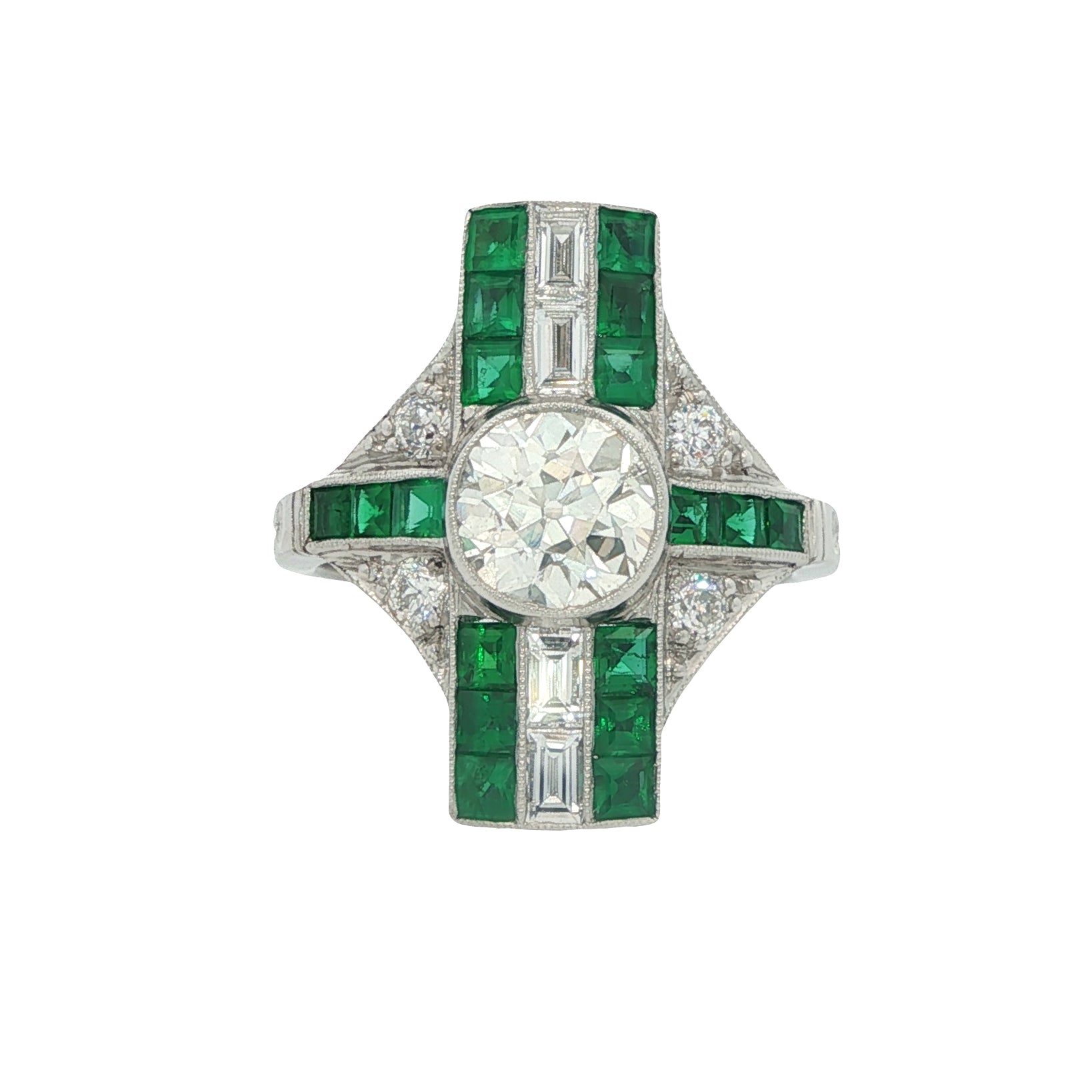 Estate Collection Art Deco-inspired Platinum Diamond & Emerald Ring