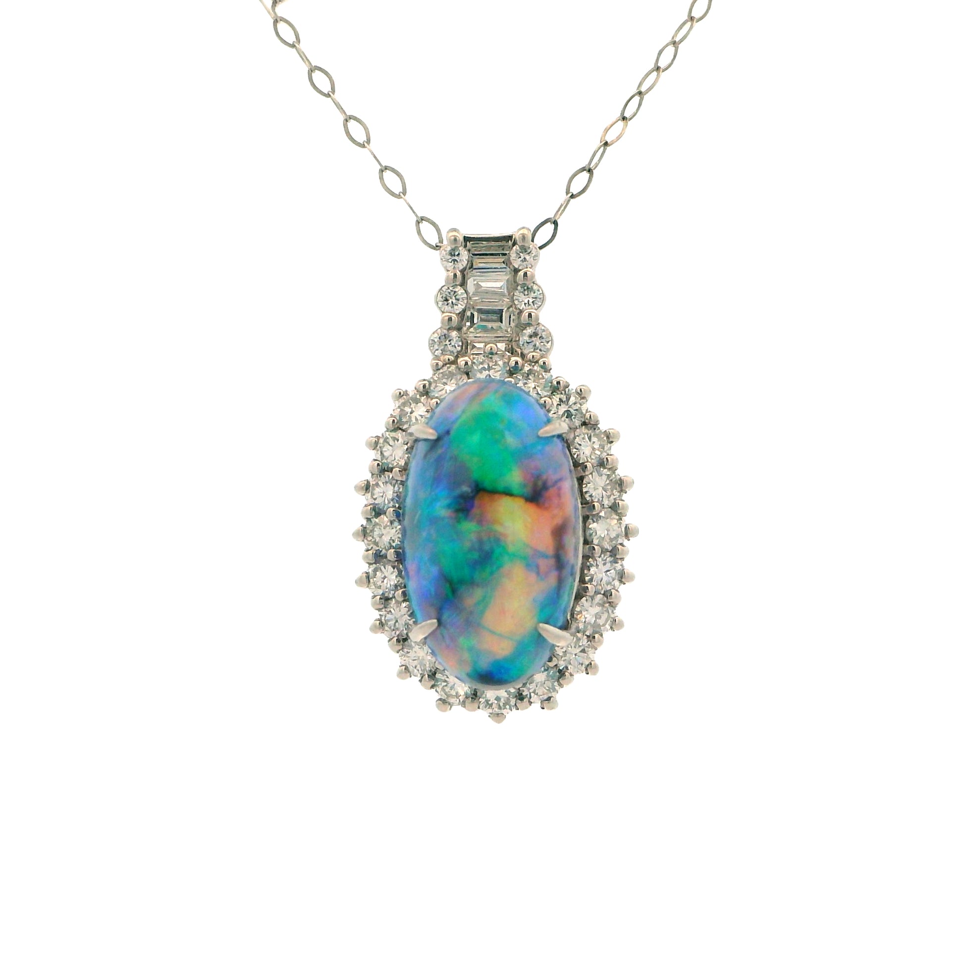 Platinum 8.26ct Black Opal with 0.88ctw accent Diamonds on a 18" Chain
