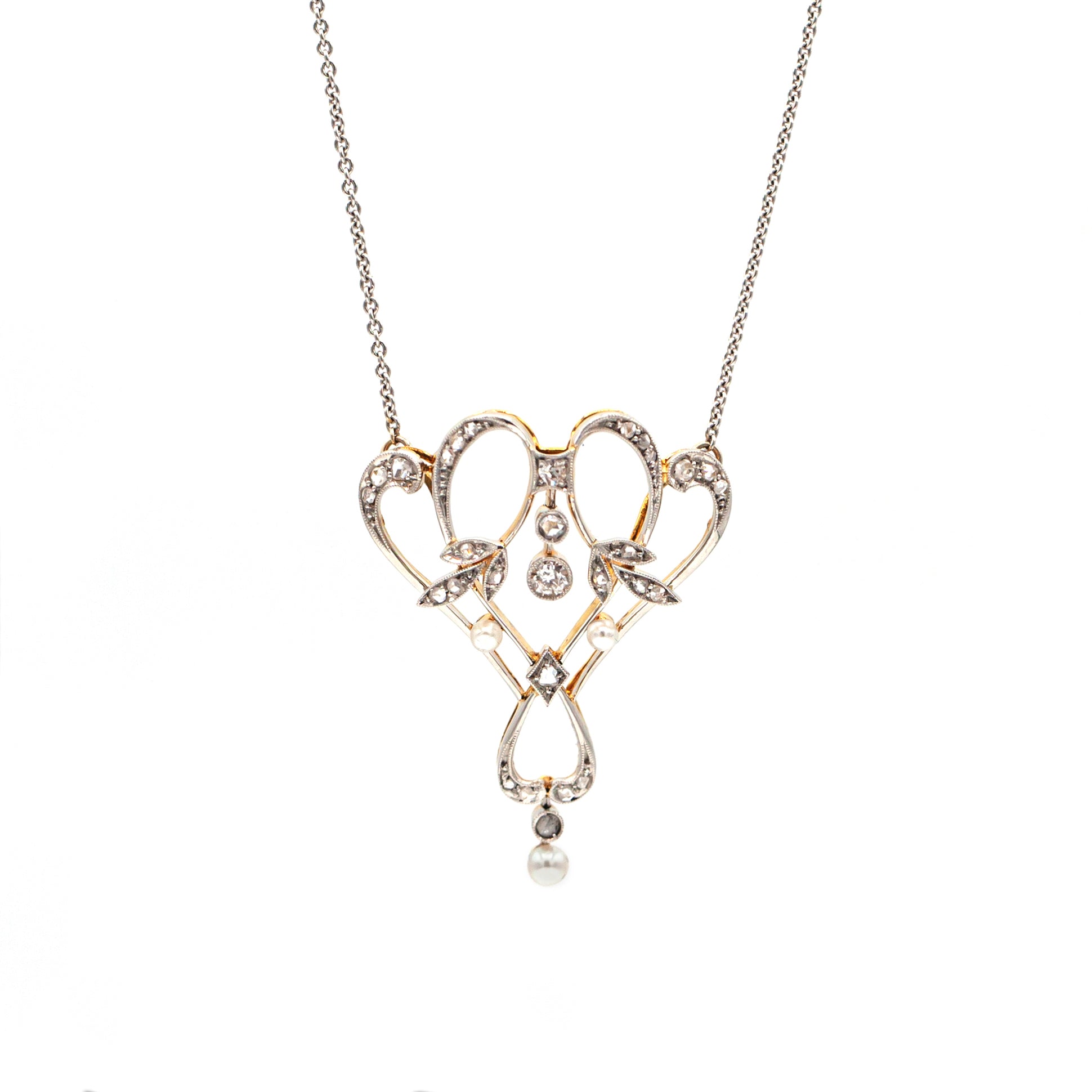 Estate Collection 18K White & Yellow Gold Victorian Diamond & Pearl Necklace