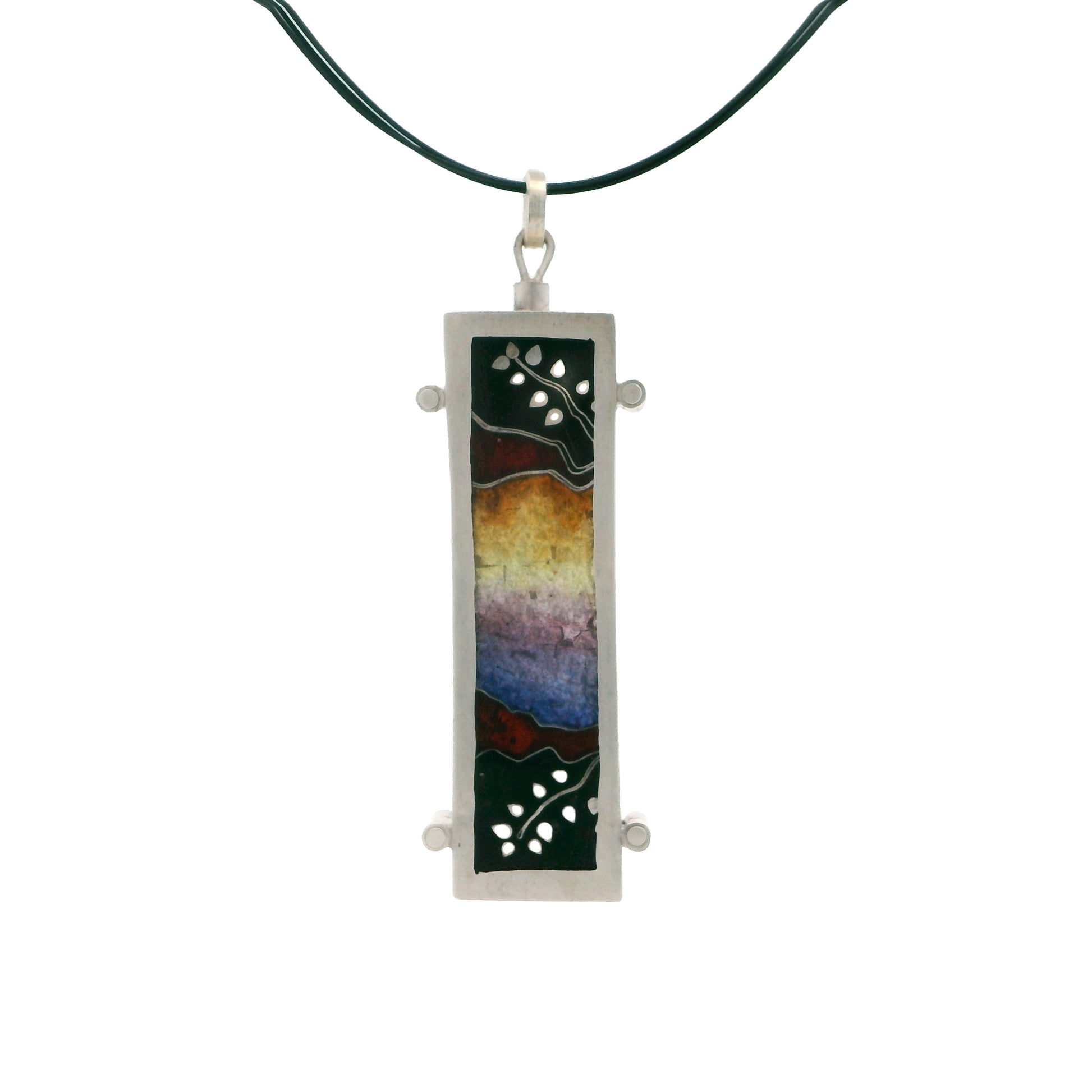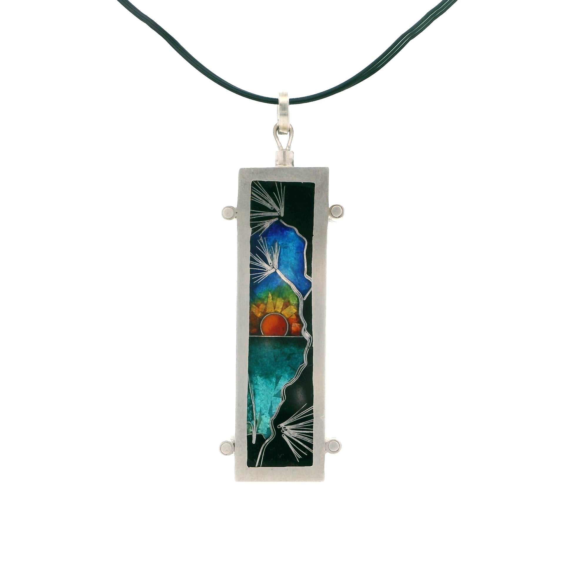 Sterling Silver Palladium & Bi-metal Cloisonné Sunrise Sunset Double-sided Pendant