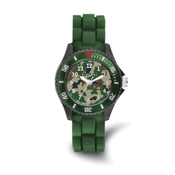 Colori Kids 30mm Green Camouflage Dial with Green Silicone Watch Band