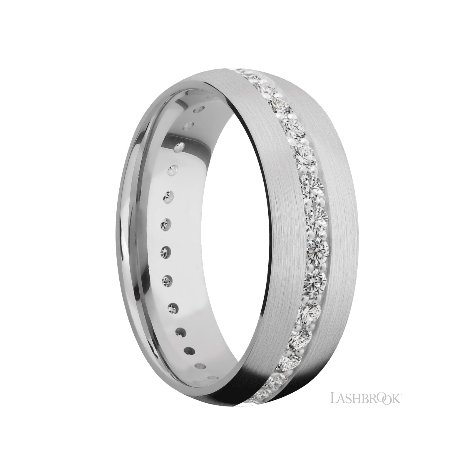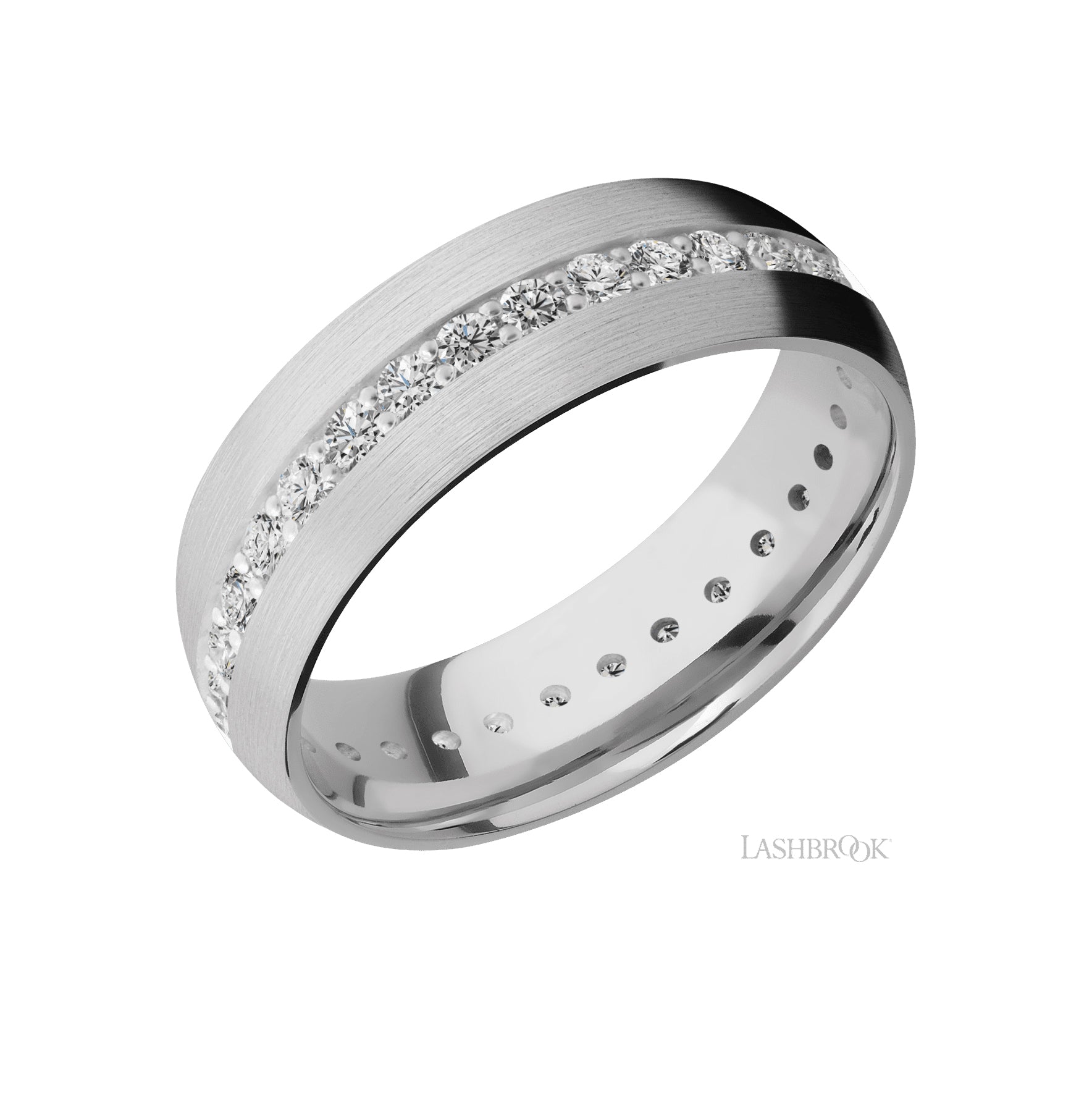 14K White Gold Domed band with an Eternity arrangement of .03 carat Round Diamond stones in a Bead channel setting - TCW 0.99ctw