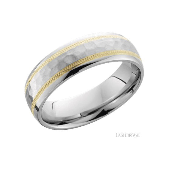 Cobalt Chrome domed band with milgrained 14K Yellow Gold grooves