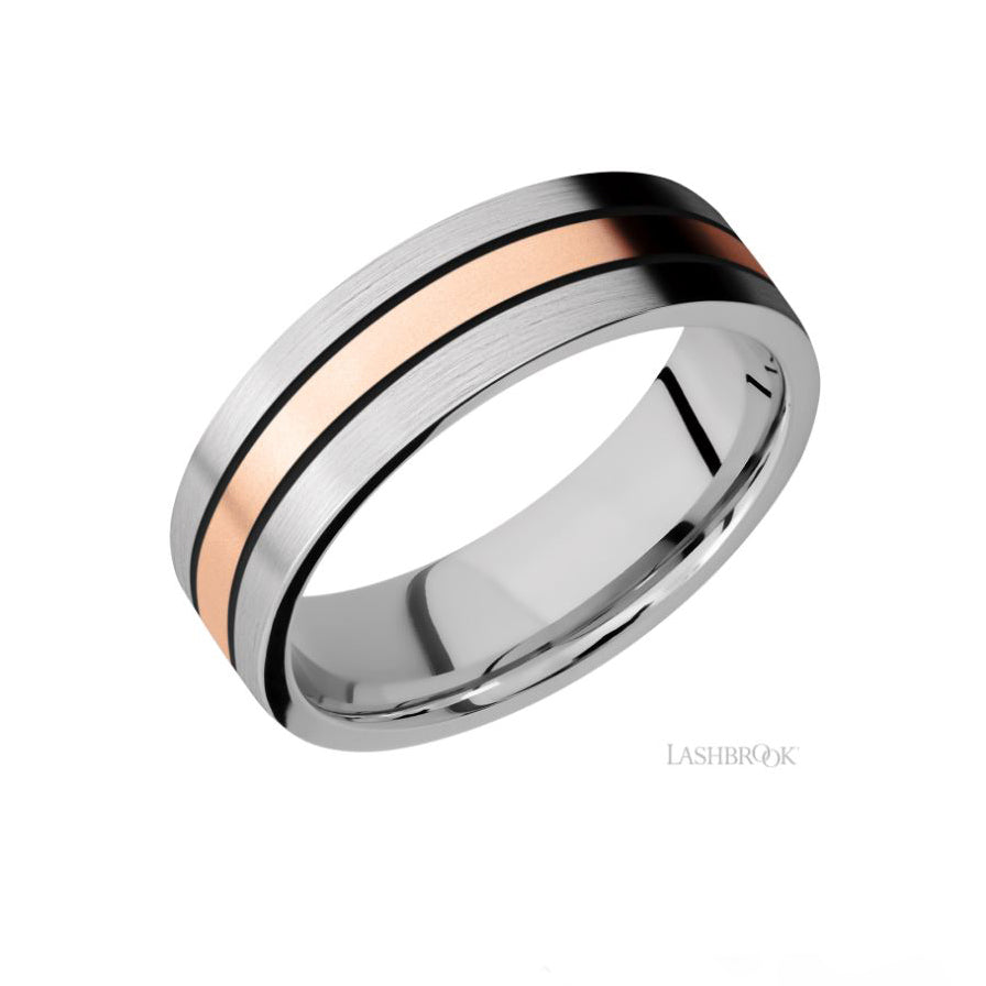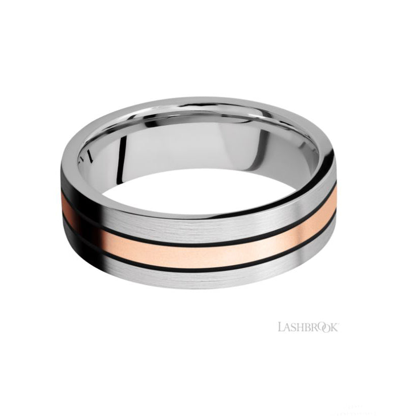 Cobalt Chrome Band with 14K Rose Gold Inlay with Black Florentine Bead