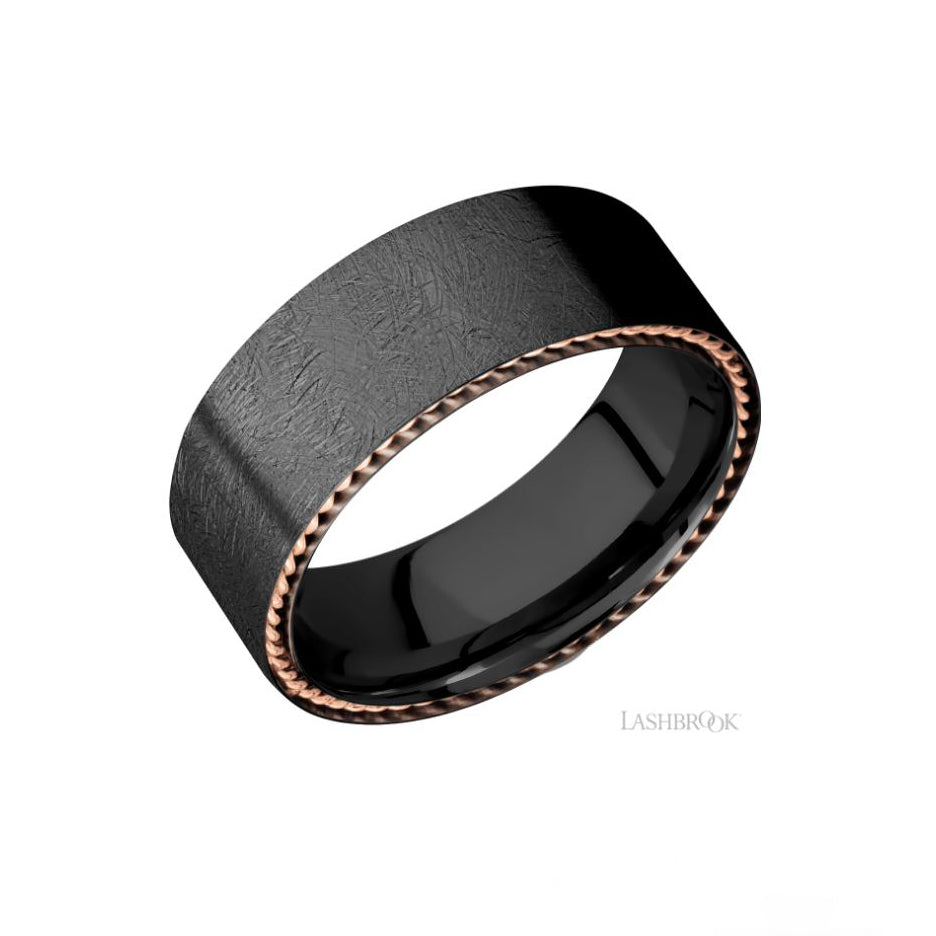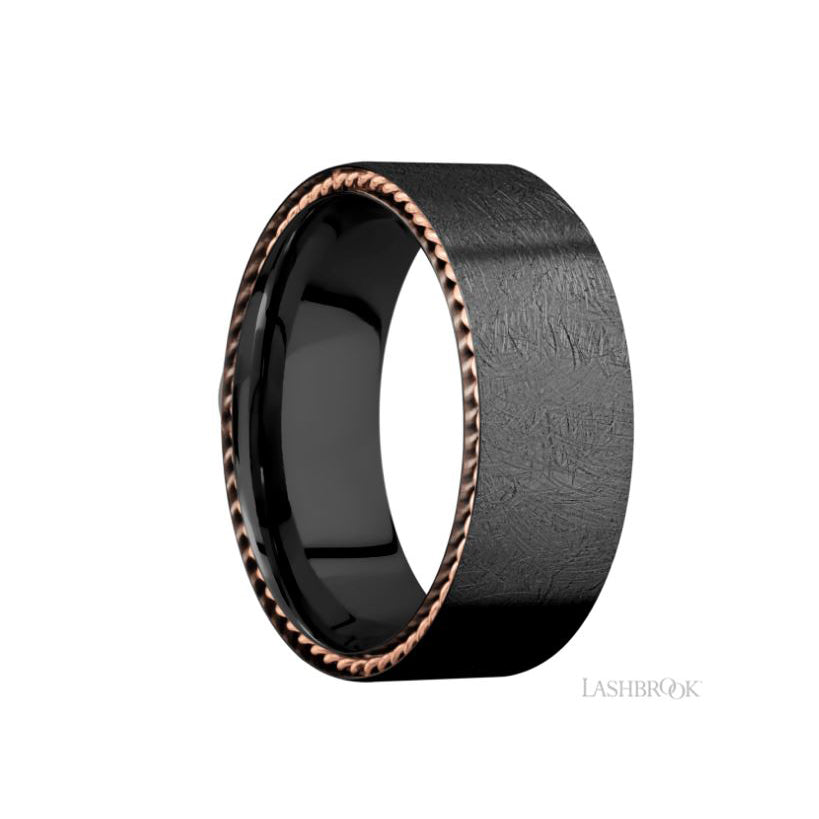 Zirconium Distressed Band with 14K Rose Gold Sidebraid