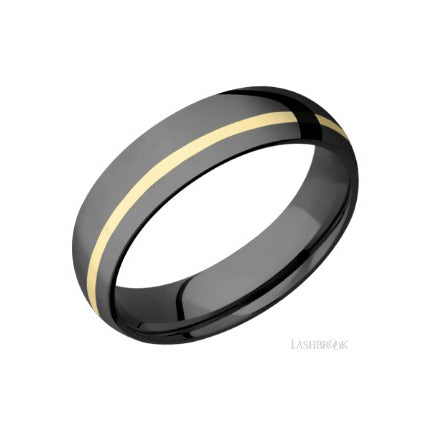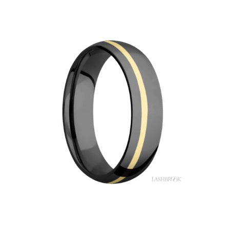 Domed Zirconium Band with a 14K Yellow Gold Off Center Inlay