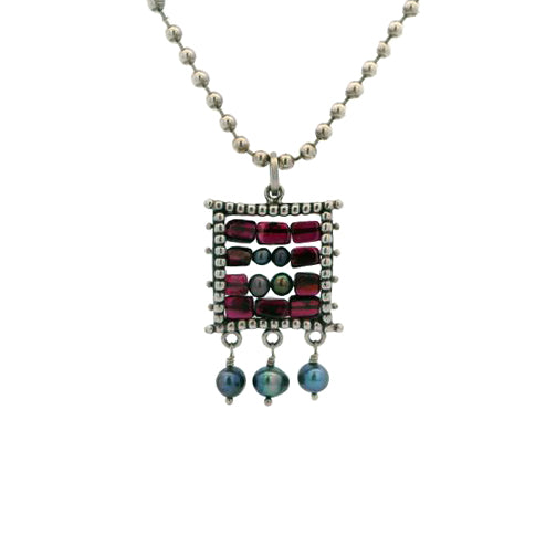 Sterling Silver Tapestry Necklace with Garnets & Black Pearls