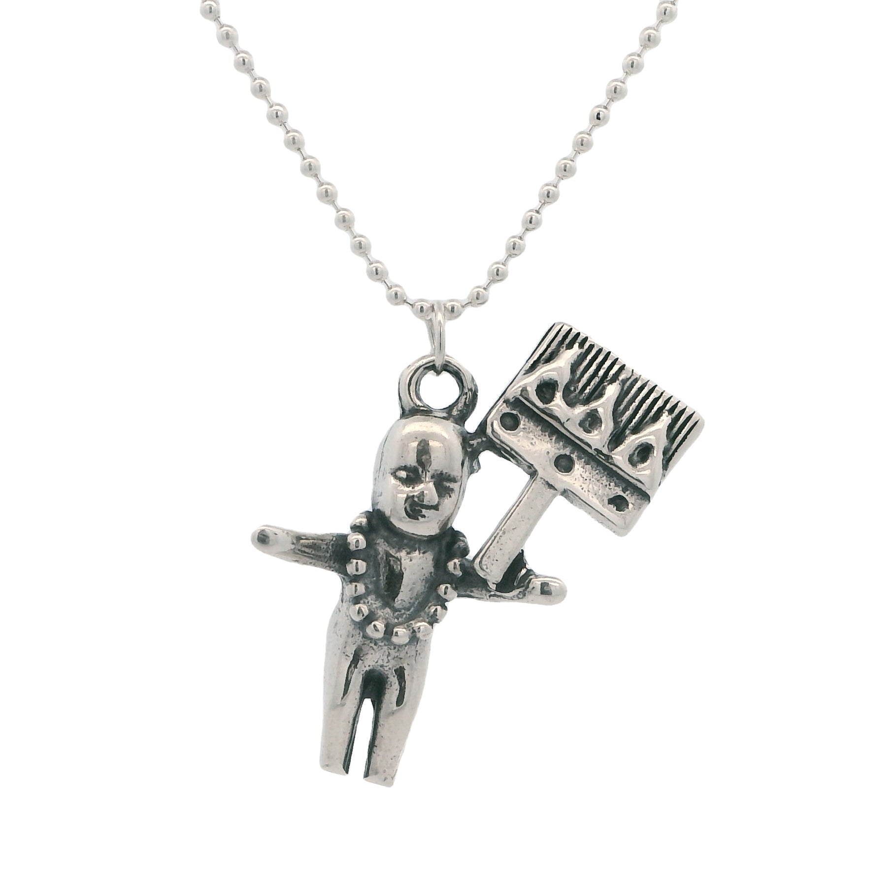 Sterling Silver King Cake Baby Flambeaux Charm on an 18" Sterling Bead Chain