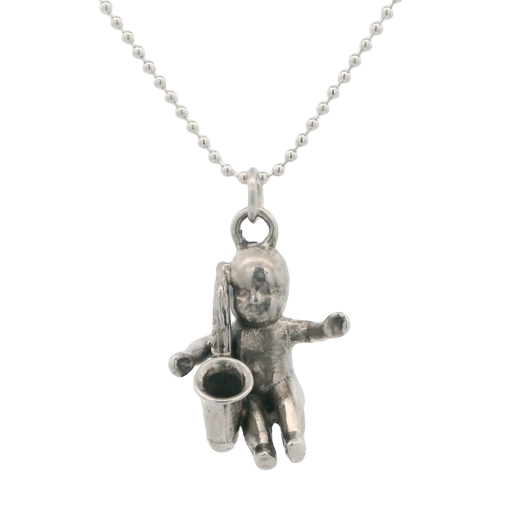 Sterling Silver King Cake Baby Saxophone Charm on an 18" Sterling Bead Chain