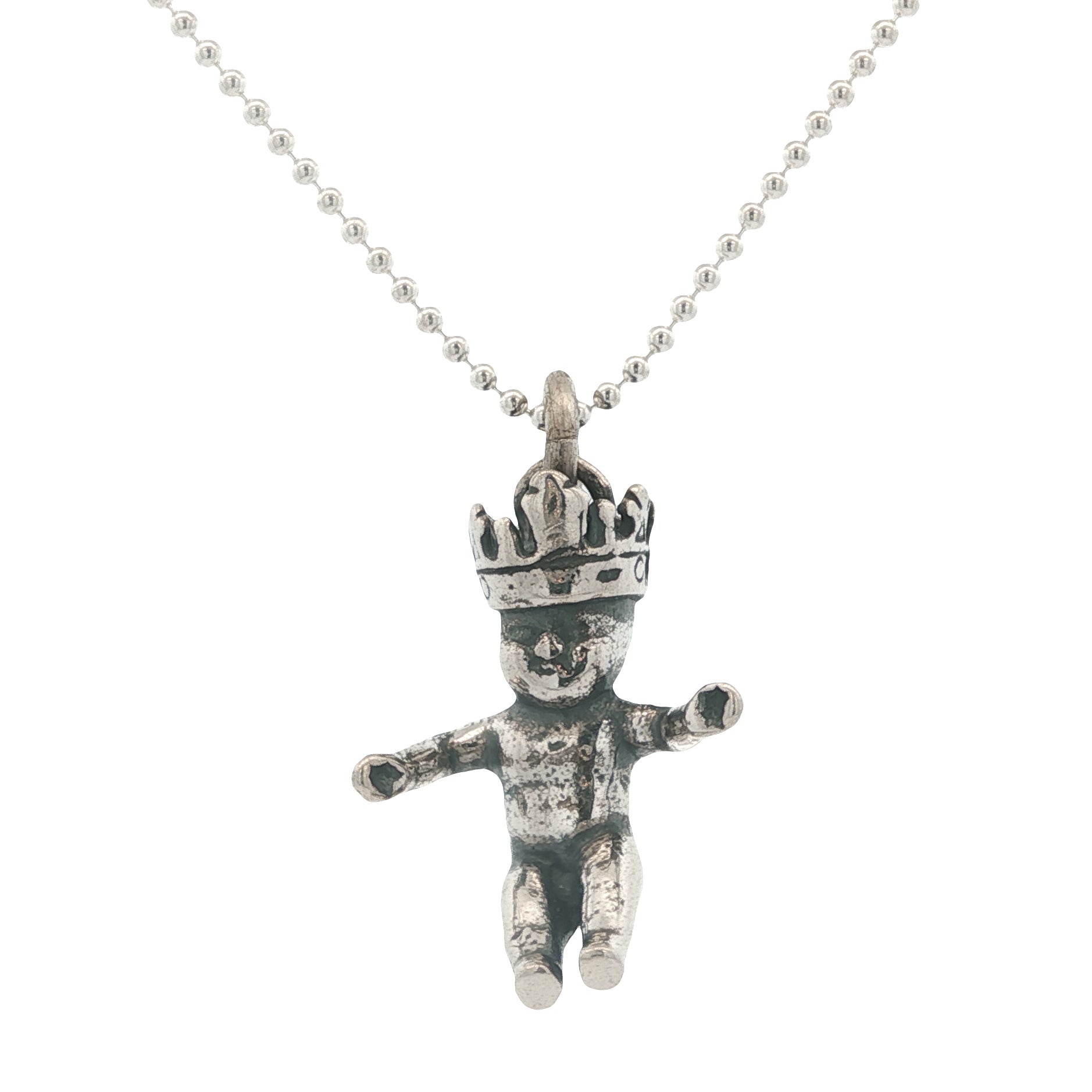 Sterling Silver Sitting King Cake Baby Charm on an 18" Sterling Bead Chain