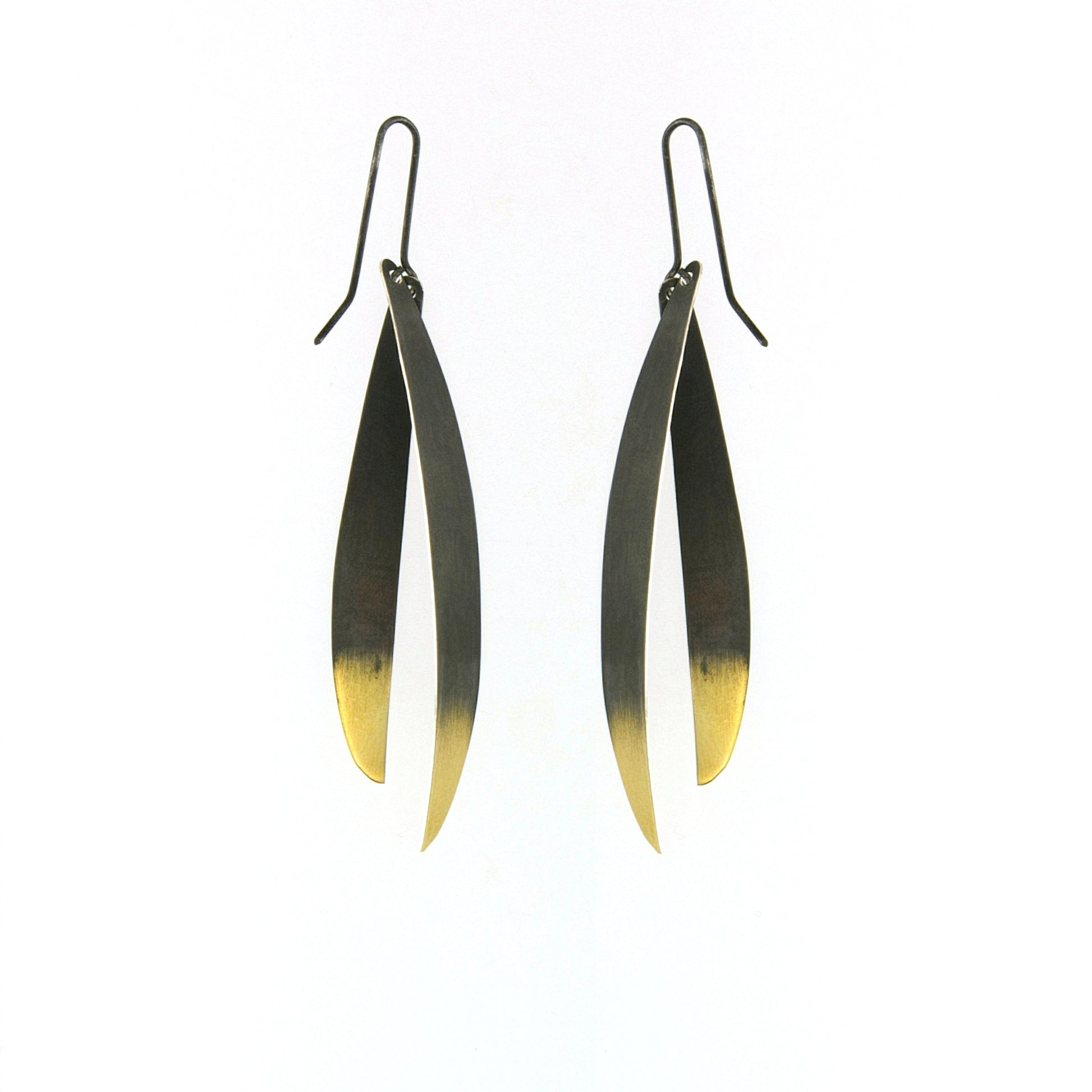Oxidized & Gold-plated sterling silver long double petals on ear wires, with a beautiful textured finish.