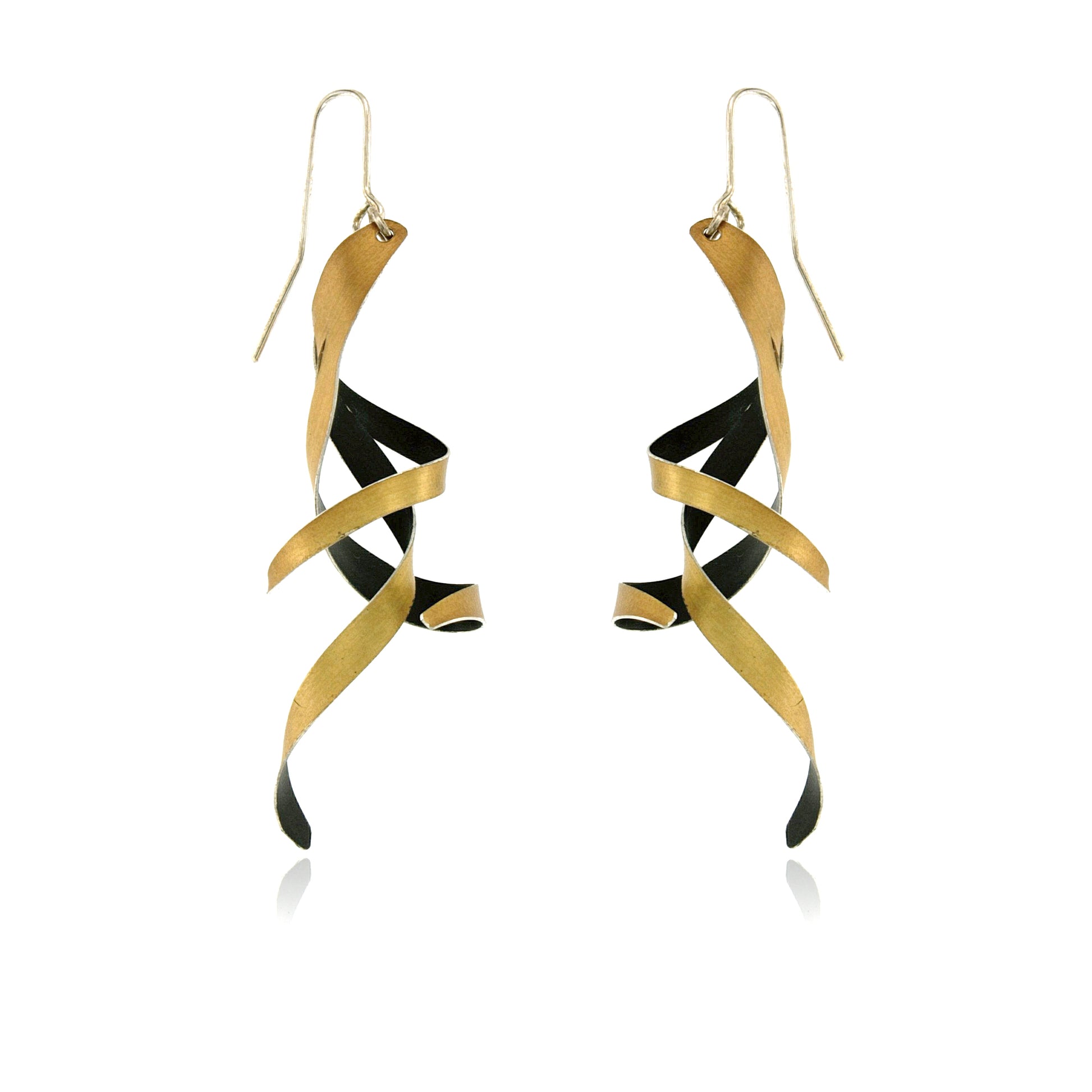 Oxidized & gold-plated sterling silver twisted ribbons on ear wires, with a beautiful textured finish.