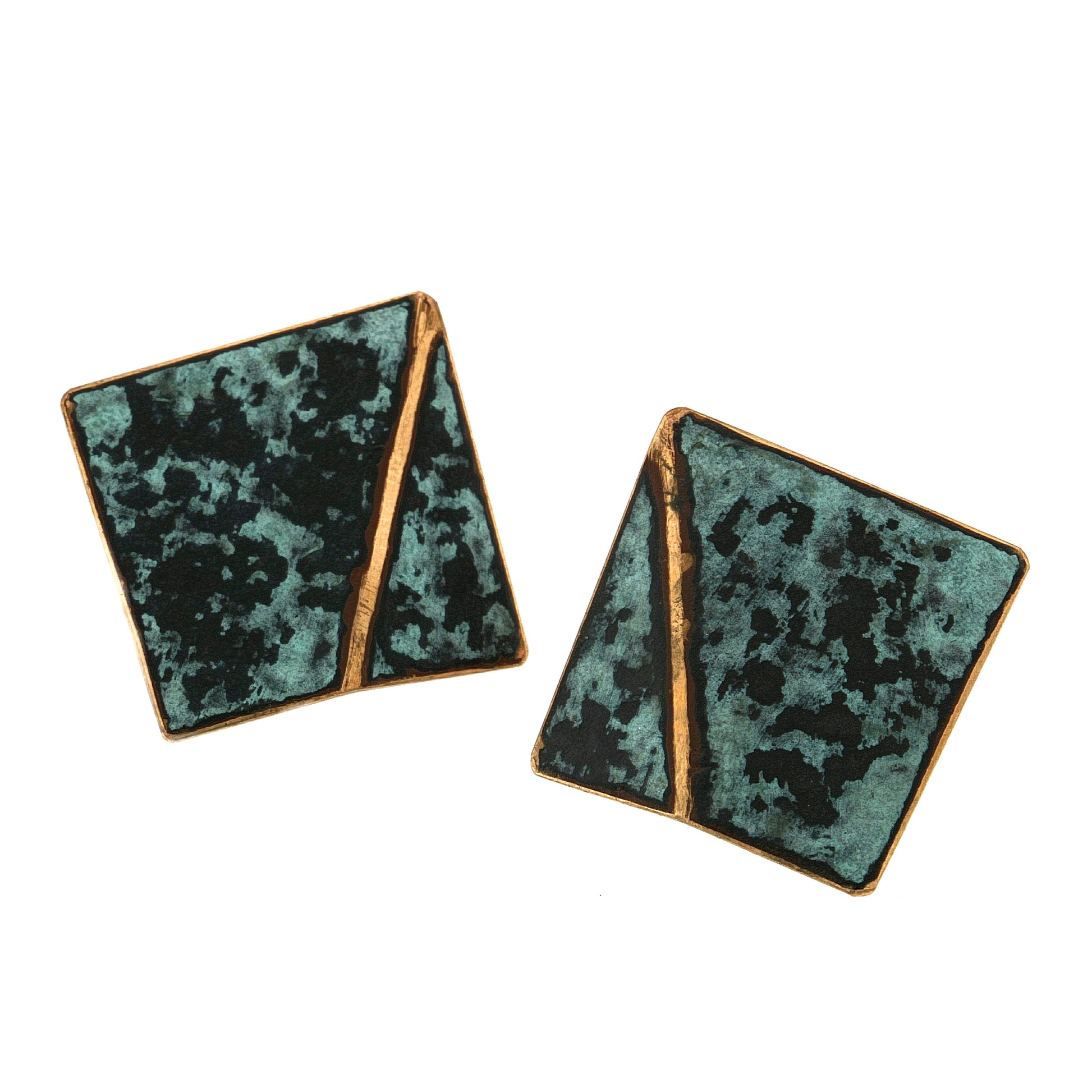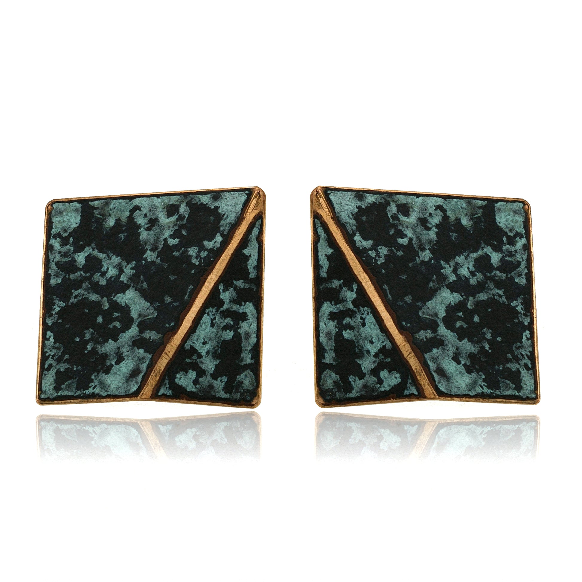 Mysterium Collection Bronze Blue Patinated Square Earrings