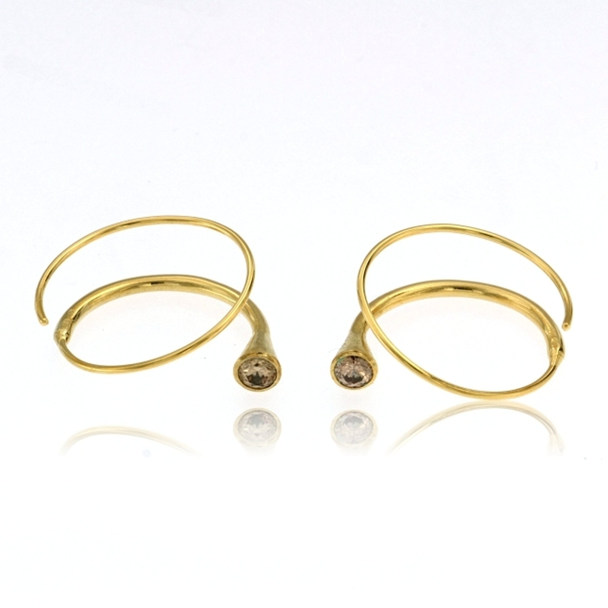 Sterling Silver Vermeil Coiled Wire Earrings ending with Champagne Cubic Zirconia
