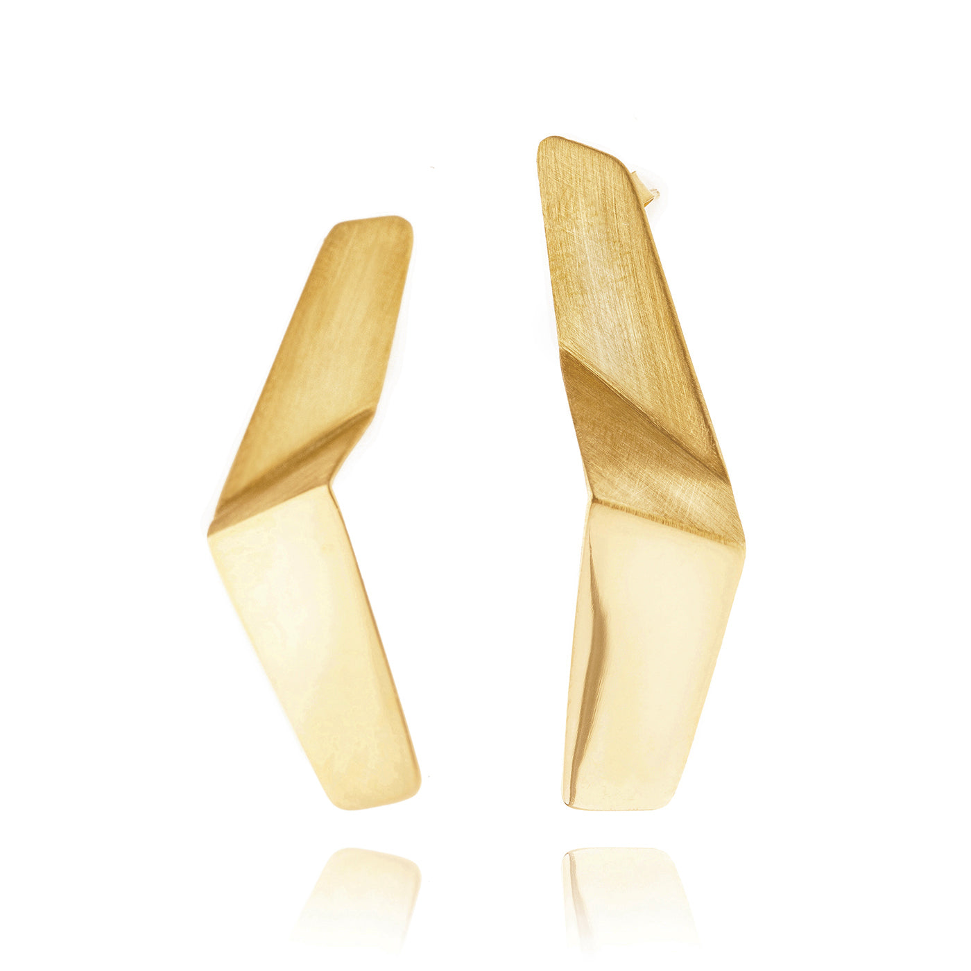 Gold-Plated Sterling Silver Bent Strip Earrings with a Matte Finish on the top and a Polished Finish on the Bottom