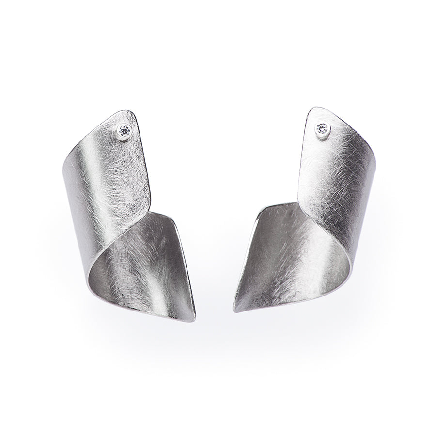 Mysterium Collection Sterling Silver Curly Strip Earrings with a Matte Finish and Cubic Zirconia Accents on Post Earrings