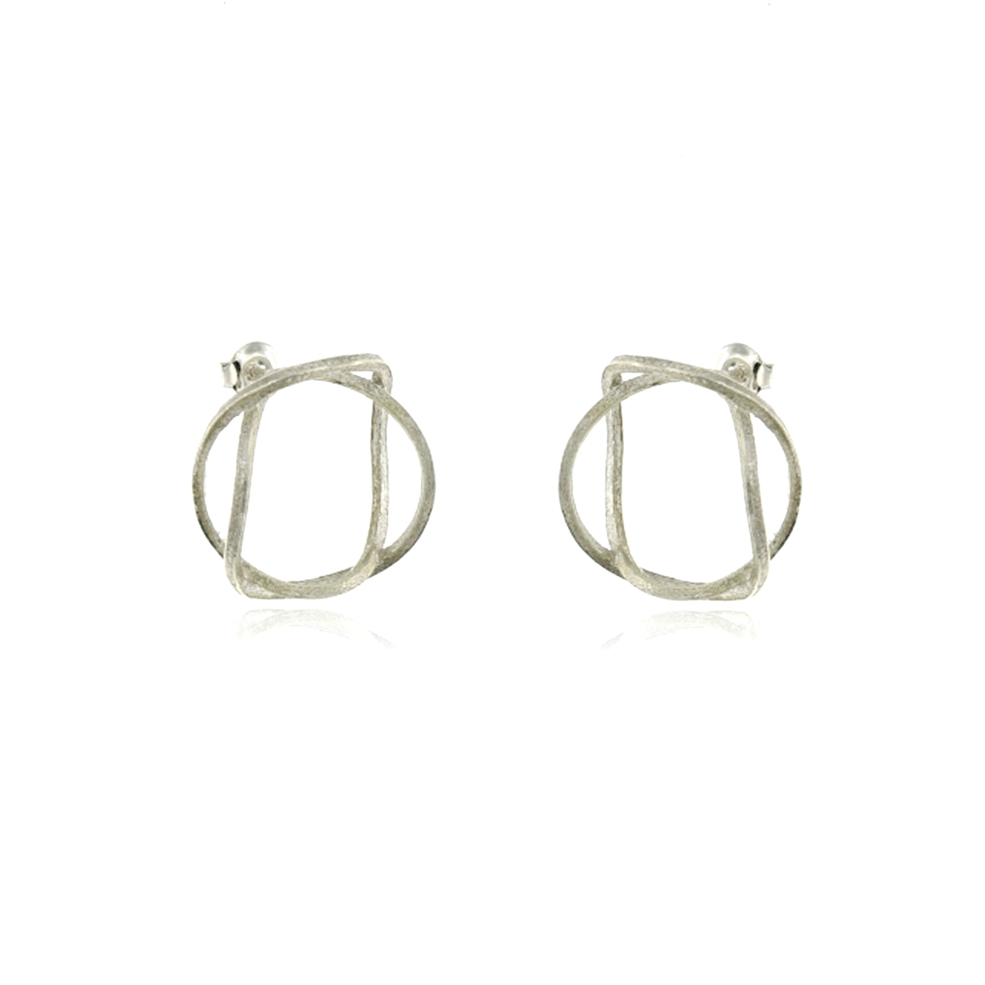 Sterling Silver two intertwined textured oval post earrings.