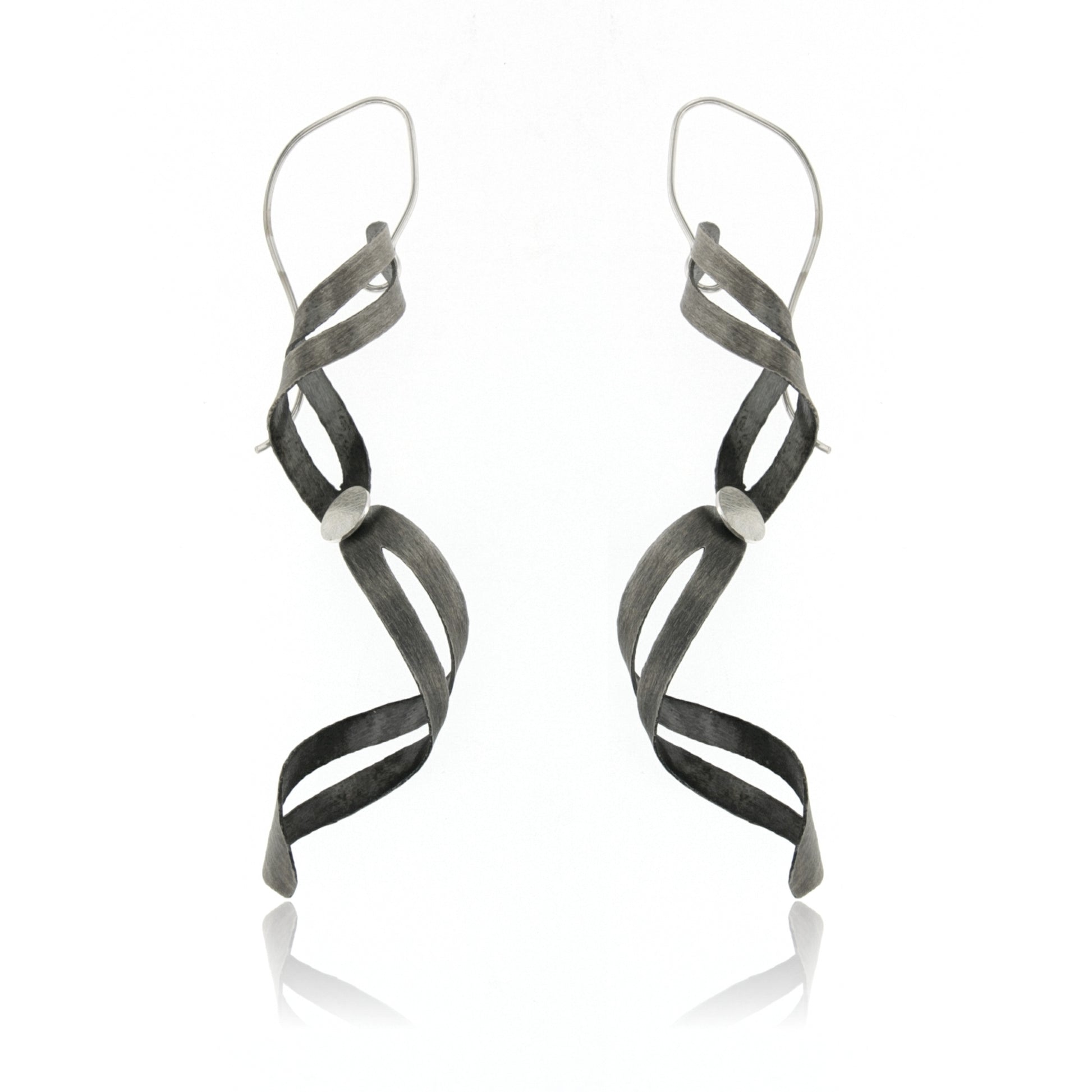 Long and lovely! Oxidized sterling silver long curled dangles, 3.5" long.