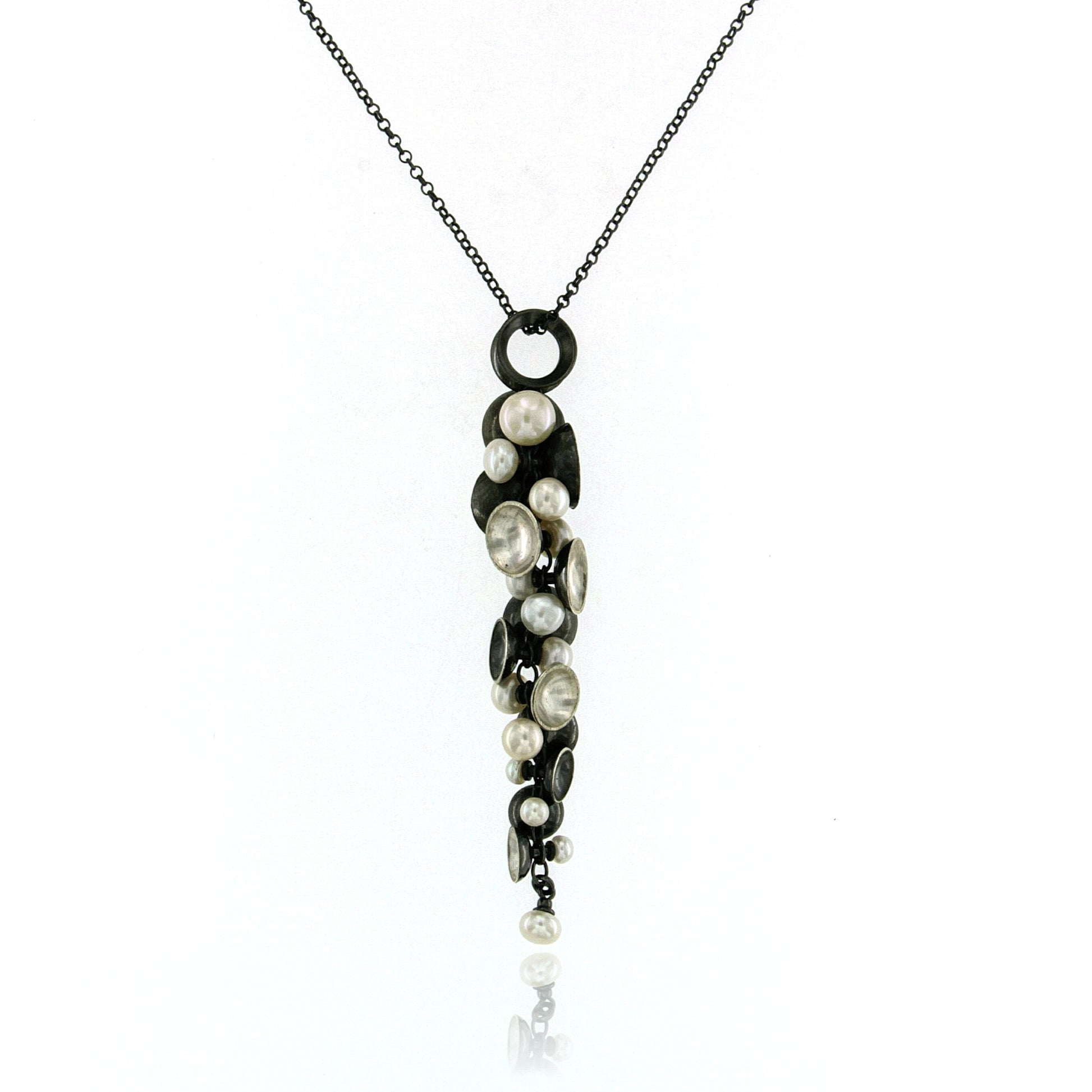 Mysterium Collection Long Oxidized Silver & Pearl Necklace