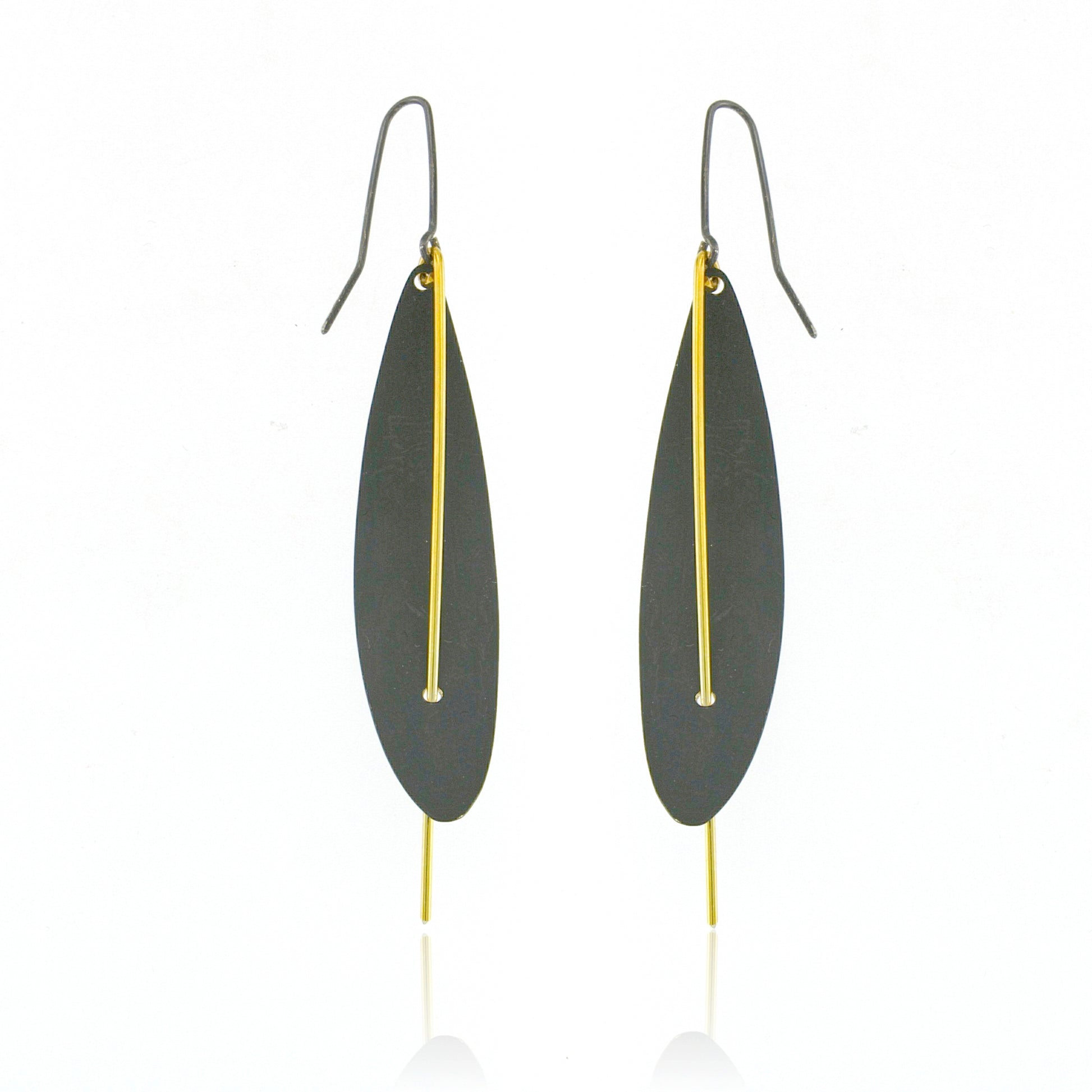 Oxidized & Gold-plated sterling silver long petals on ear wires, with a beautiful textured finish.