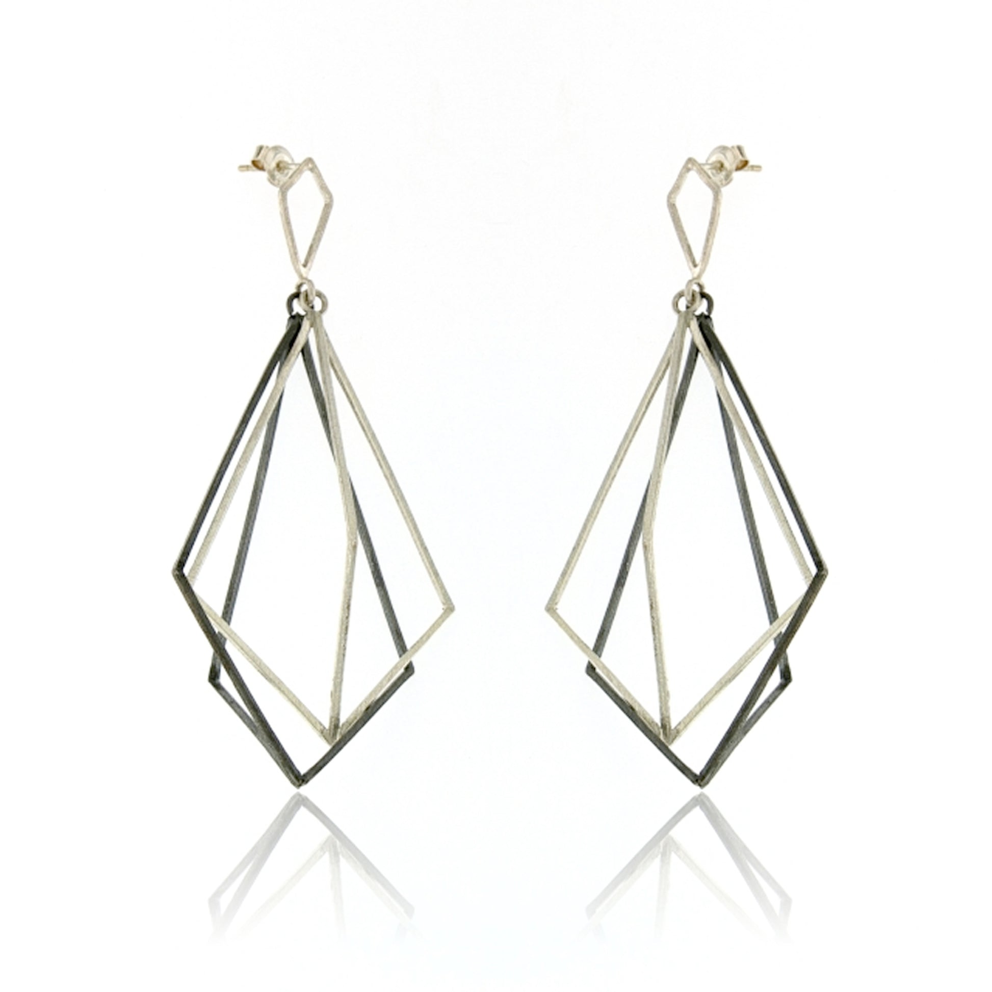 Oxidized sterling silver 3d kites on posts.