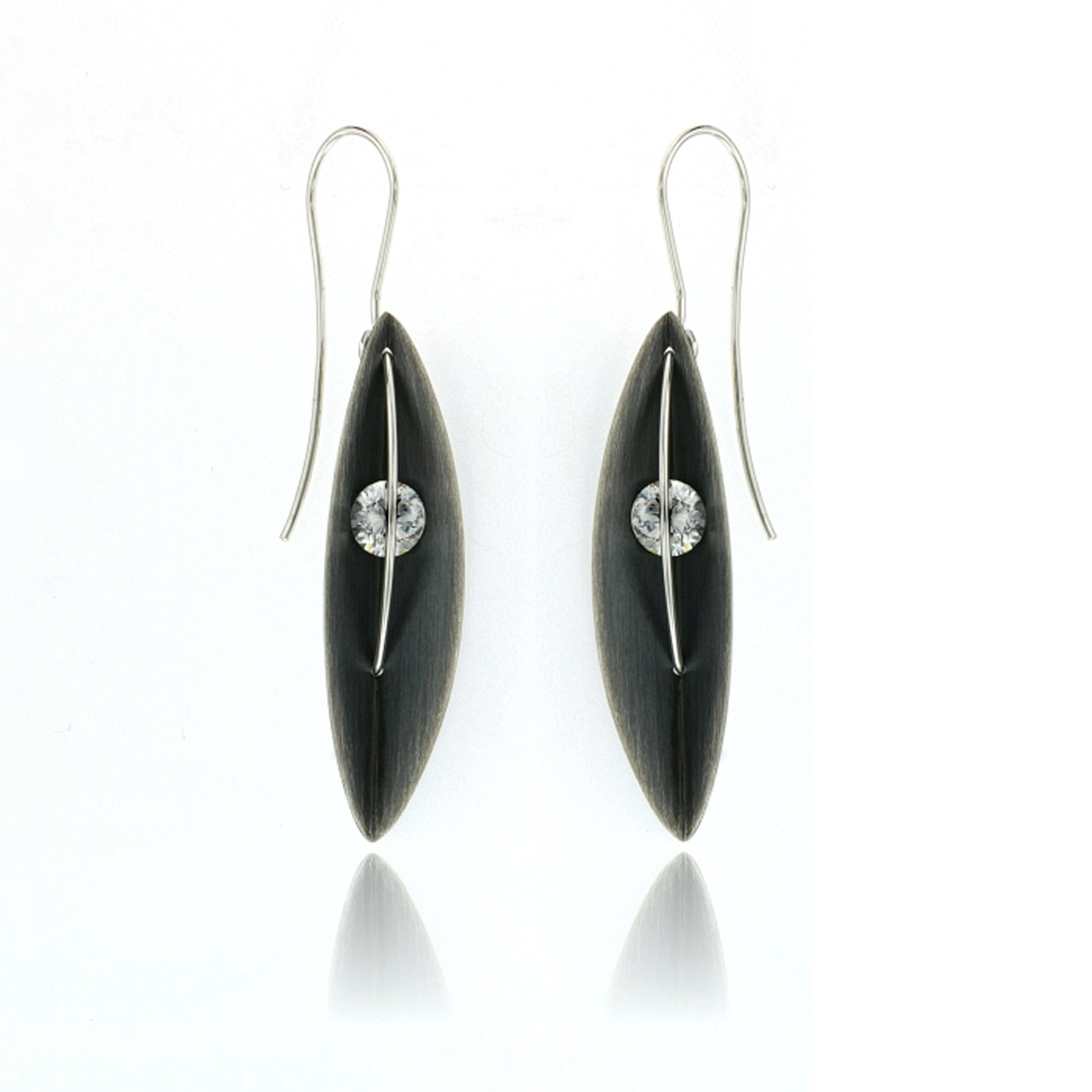 Oxidized Sterling Silver Leaf Earrings with Cubic Zirconia