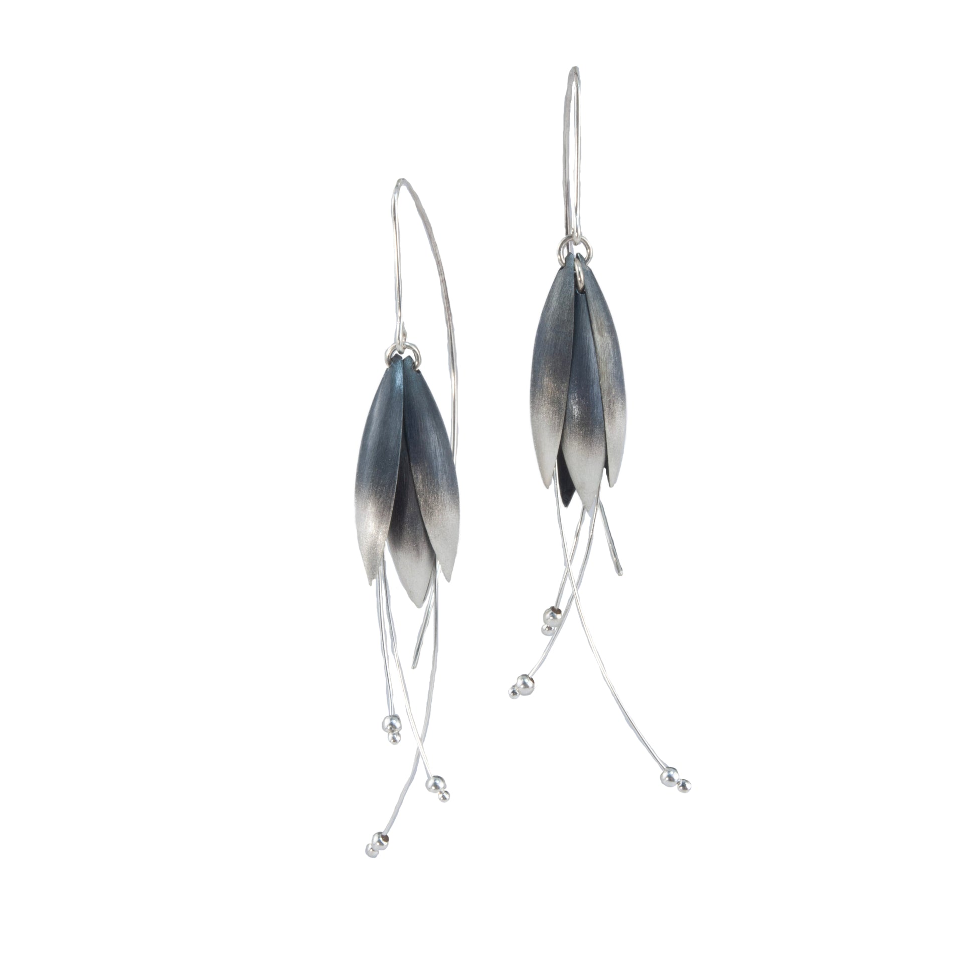 Oxidized Sterling Silver Shaded Tulip Petal Earrings